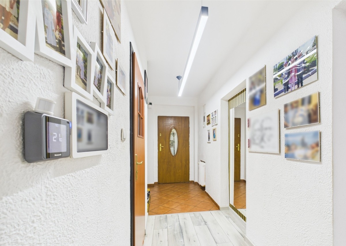 Korytarz z wyjściem na balkon - doskonałe miejsce na poranną kawę lub chwilę relaksu
