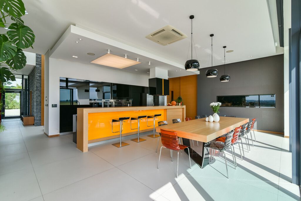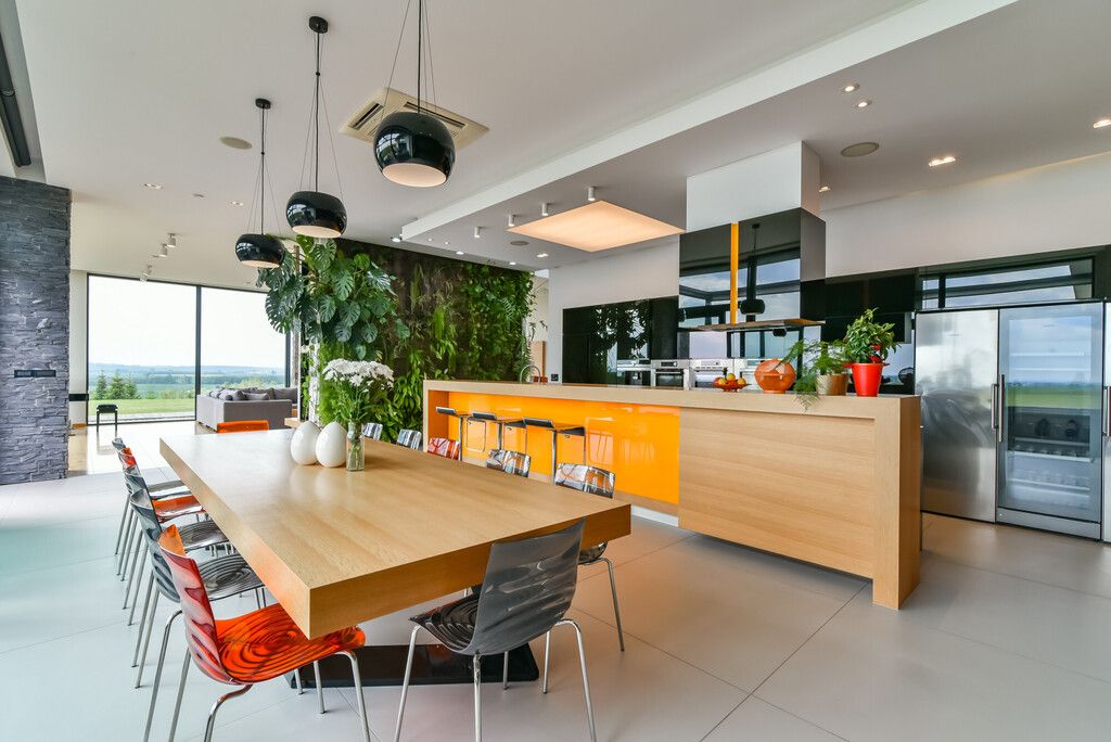 - reprezentacyjna strefa dzienna z salonem, jadalnią i kuchnią