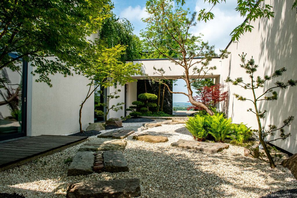- Basen, prywatne boisko, sauna, ogród japoński i tarasy z widokiem na zachód