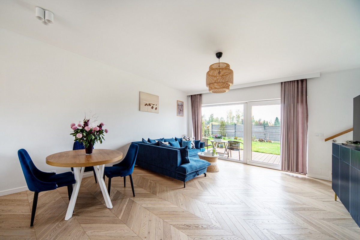 Nieruchomość została wykończona z dbałością o każdy detal, w wysokim standardzie. To idealna propozycja dla rodzin szukających przestrzeni, komfortu i bliskości natury, jednocześnie nie rezygnując z wygody szybkiego dojazdu do Warszawy.