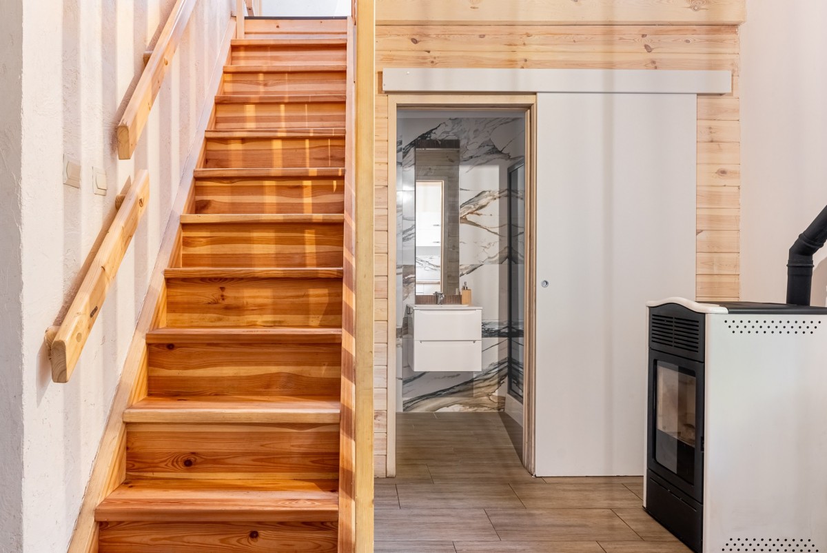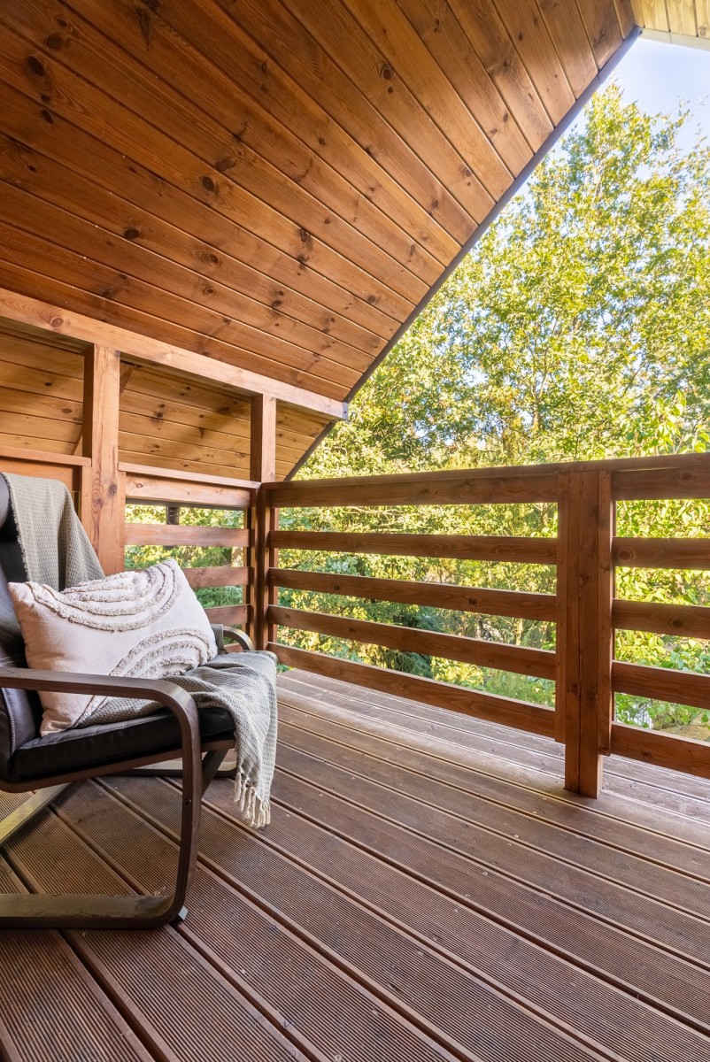 Piętro: dwa przechodnie pokoje, z czego jeden z wyjściem na balkon - idealnym miejscem na wieczorny relaks