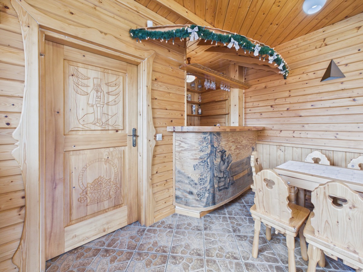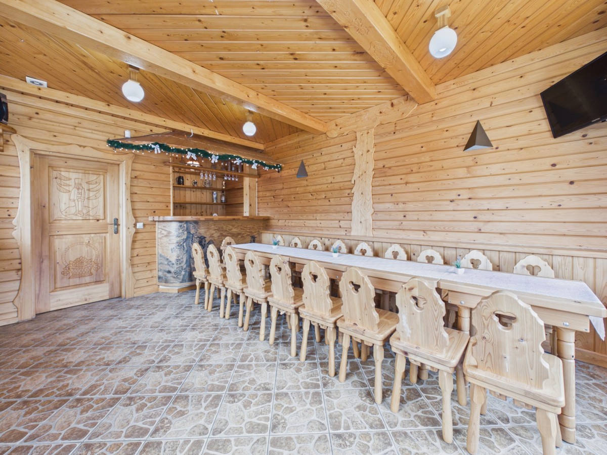 Poziom I (Strefa gastronomiczno-gospodarcza): Kameralna mini restauracja, w pełni wyposażone zaplecze kuchenne, toaleta oraz funkcjonalna narciarnia.