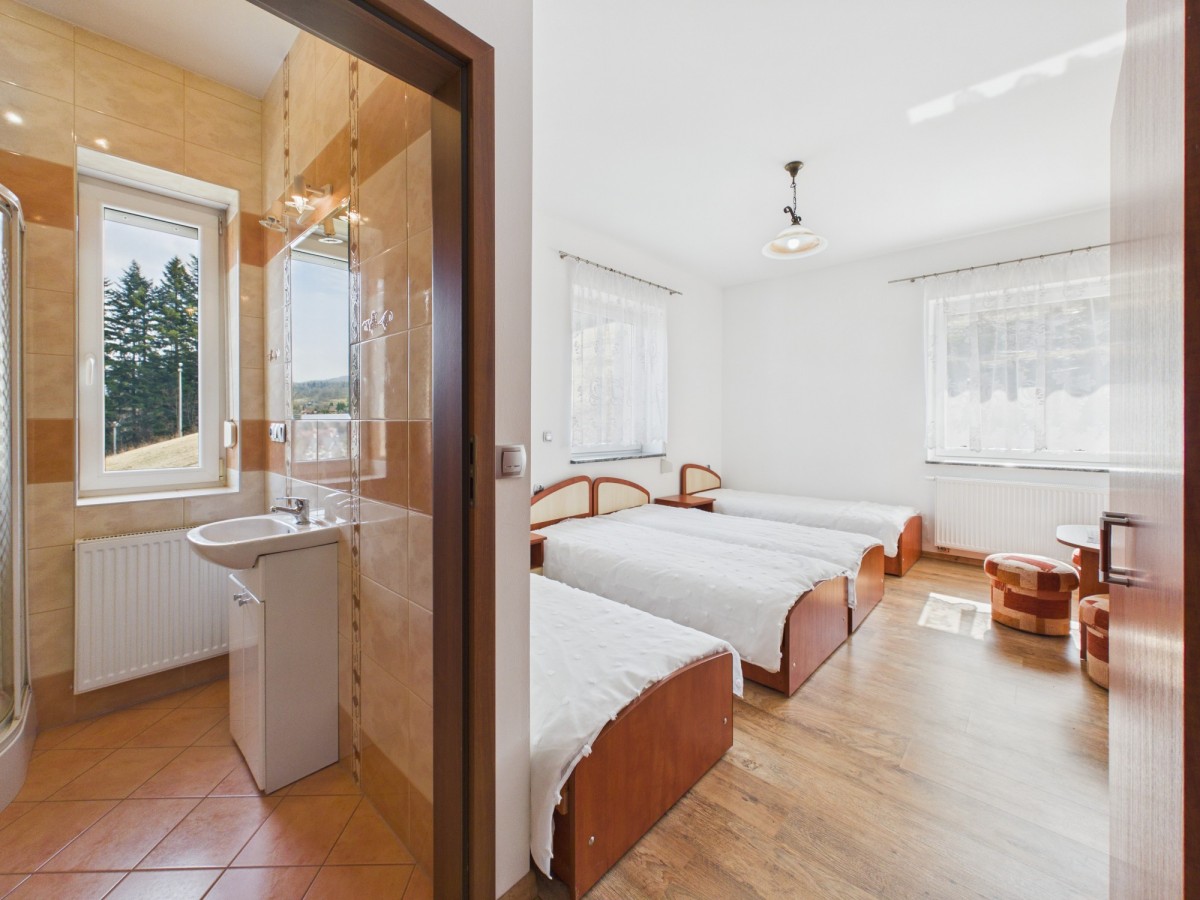 Część dla gości: 3 pokoje (dwa 2-osobowe oraz jeden 4-osobowy), każdy z prywatną łazienką.