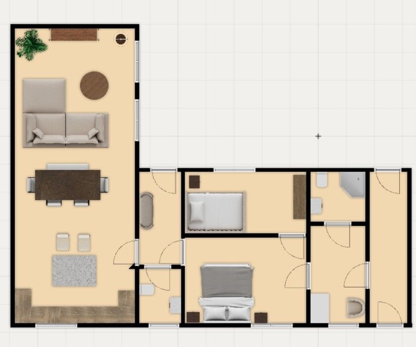 - duży przestronny salon z miejscem na aneks kuchenny