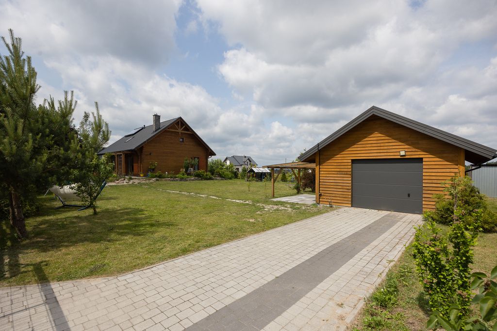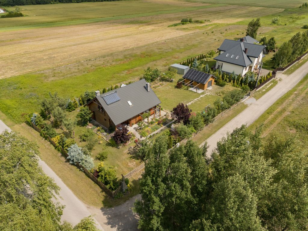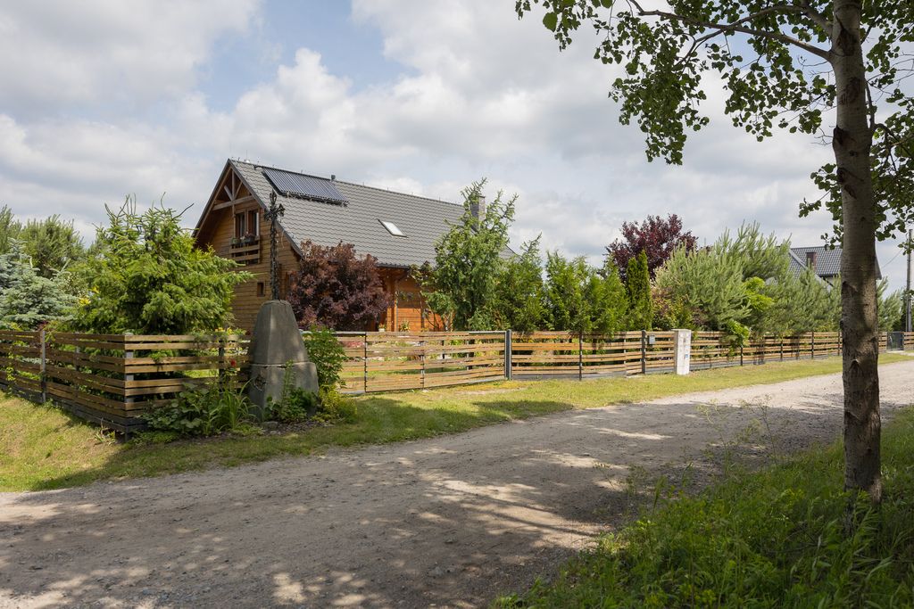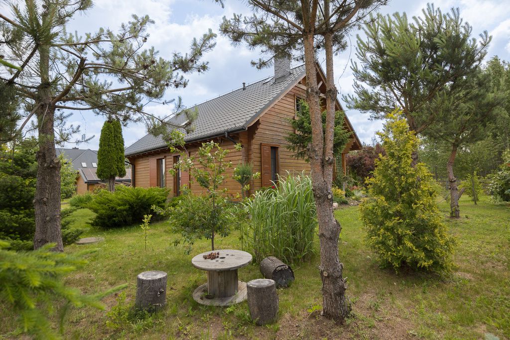 Wolnostojący dom z bali w miejscowości Chrosna, gmina Kołbiel o powierzchni użytkowej 138,6 m², usytuowany na działce o powierzchni 1 500 m².