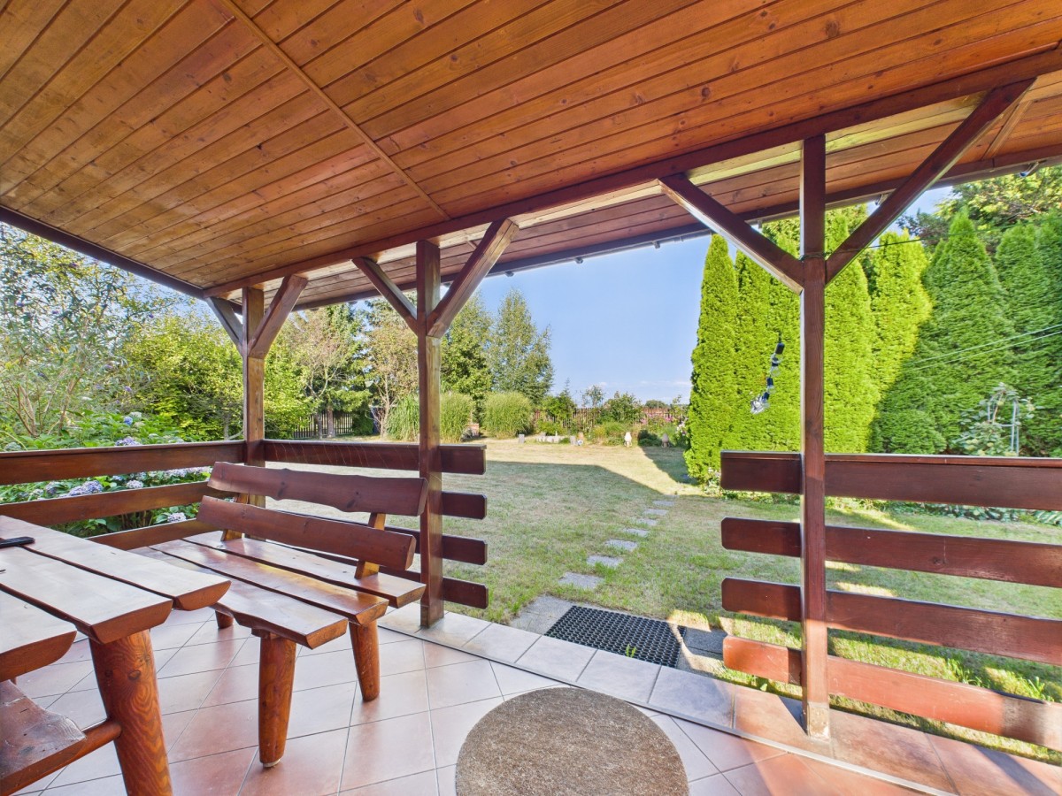 • ogród: miejsce na ognisko, grill, wędzarnia, drzewa owocowe oraz pełno kwiatów.