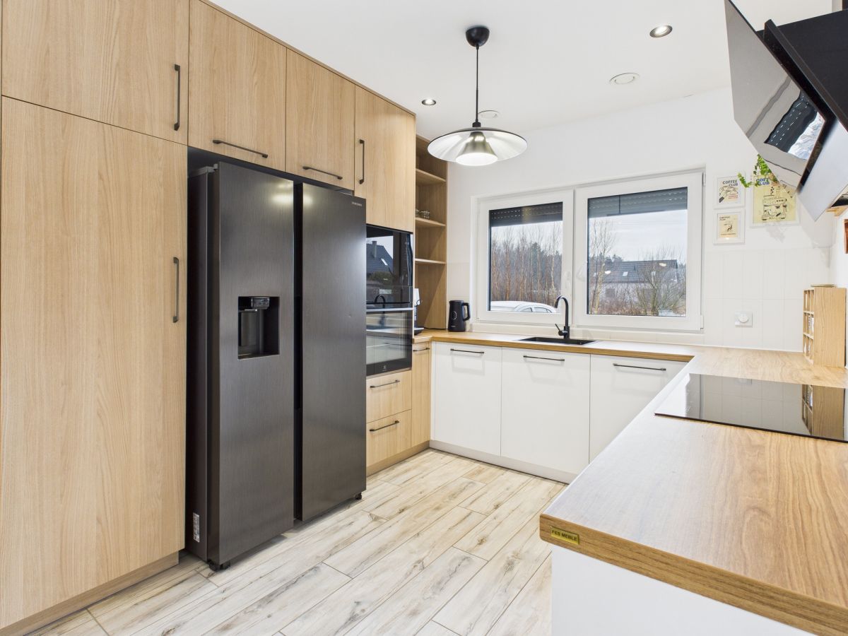 Parter i Piętro: Kuchnia, salon + 6 ustawnych pokoi, 2 łazienki.