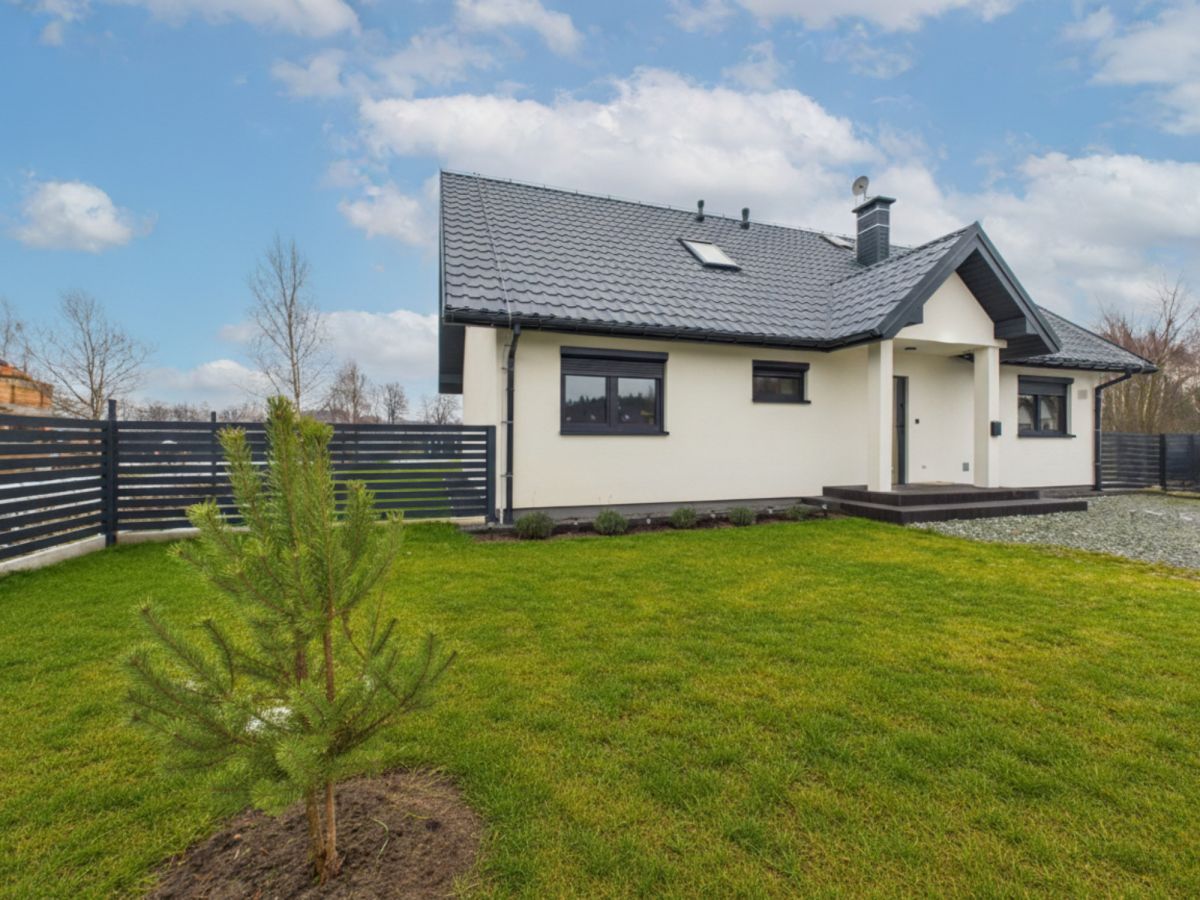 Zabezpieczenia: Rolety antywłamaniowe (parter), instalacja odgromowa, czujniki czadu/dymu, przygotowane okablowanie pod alarm.