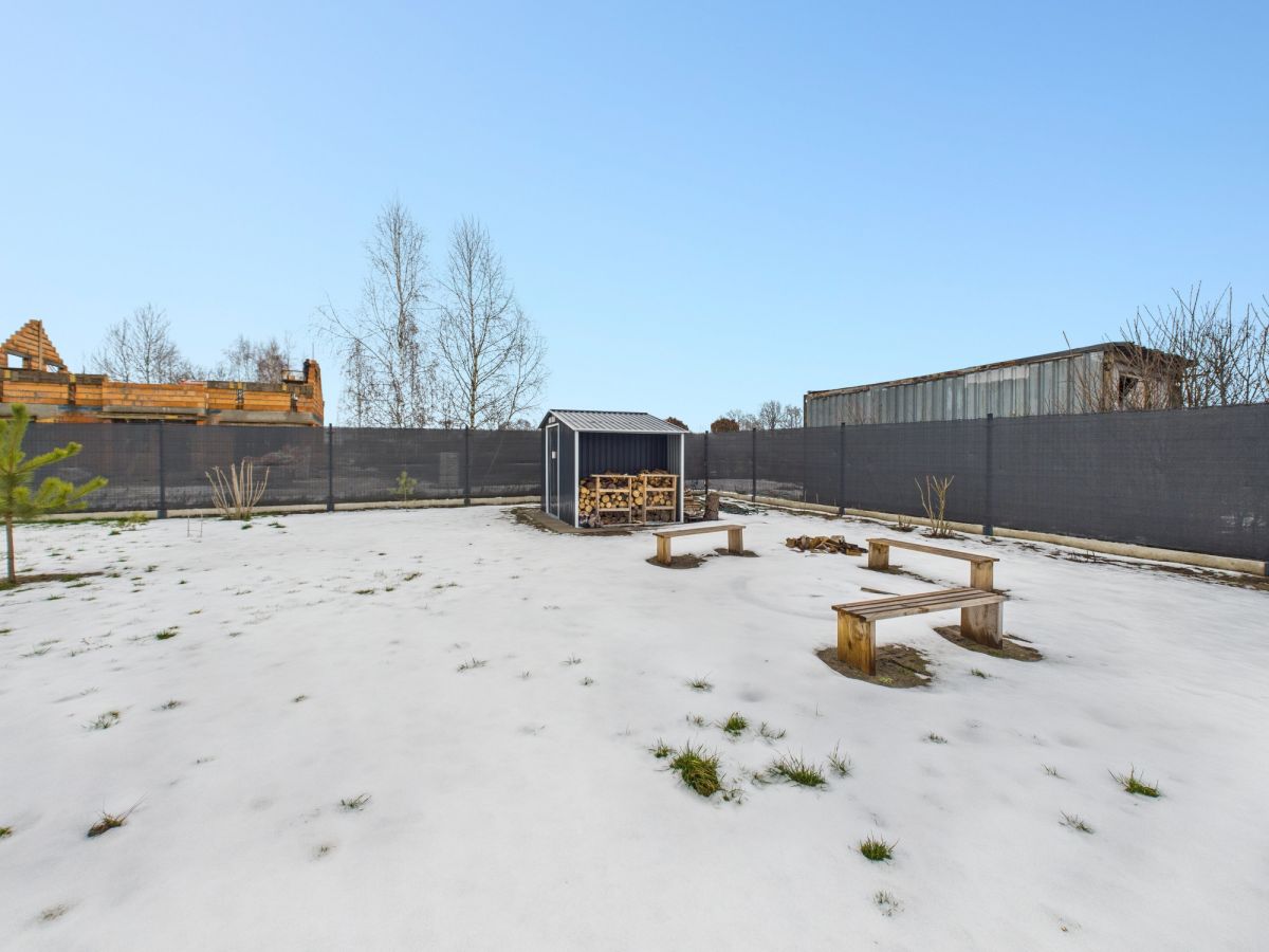 Zagospodarowanie: Teren w pełni ogrodzony, liczne nasadzenia (sosny, brzozy, lawenda, maliny), wydzielone grządki.