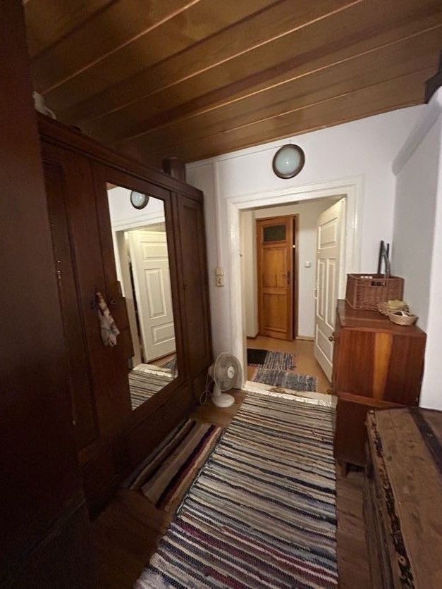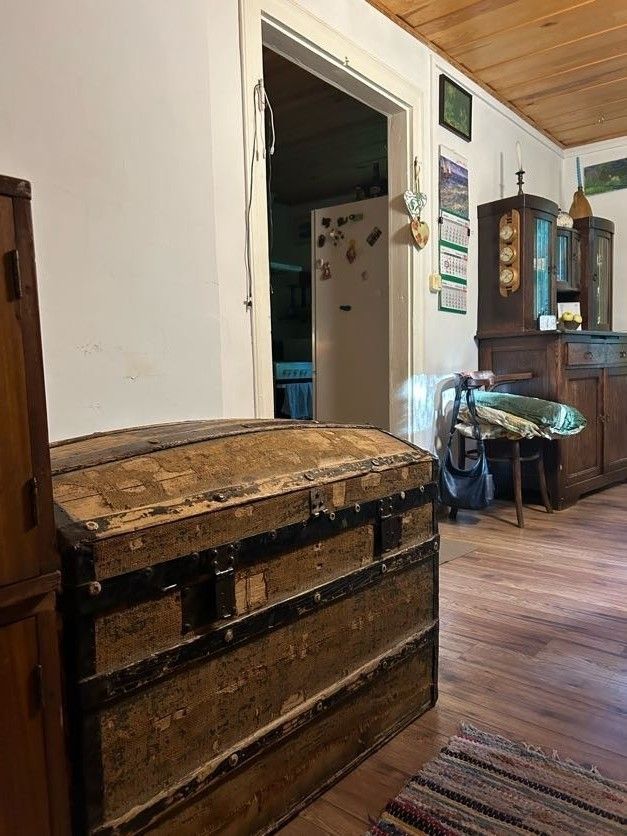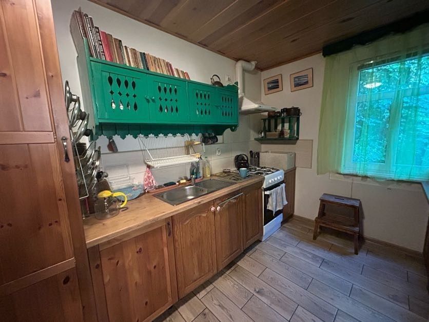 Dom jest drewniany – ale to jego autentyczność i surowy klimat przyciągają. Układ wnętrza: