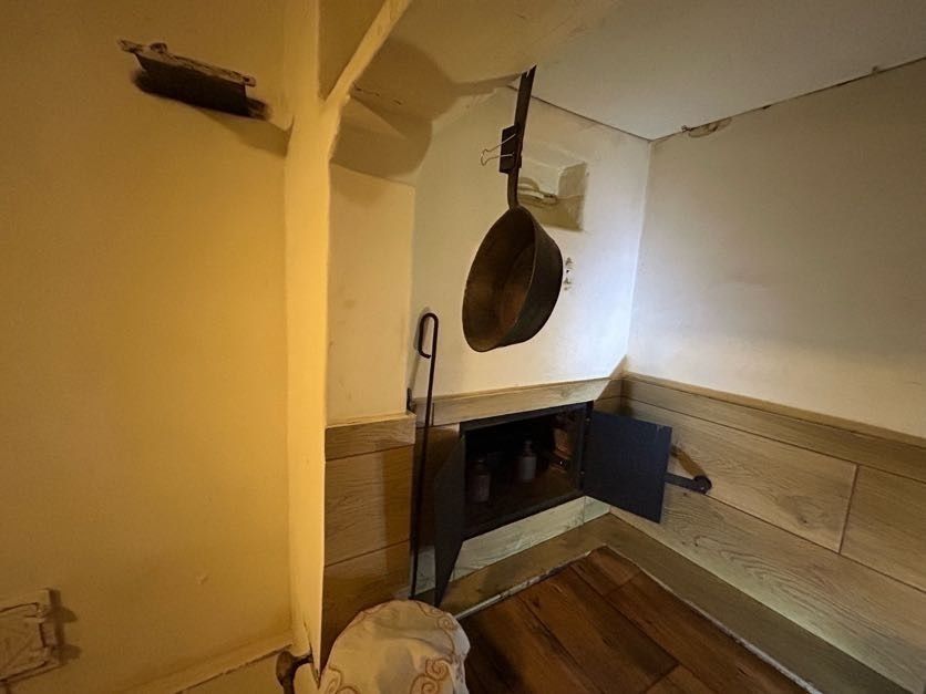 Całość w klimacie wiejskiej zagrody z lat 40. XX wieku, z pięknie zachowaną strukturą.