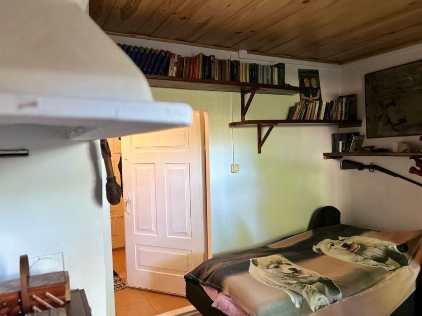 Dom jest drewniany, parterowy, w stanie do odświeżenia – ale z ogromnym potencjałem adaptacyjnym. Do dyspozycji masz:
