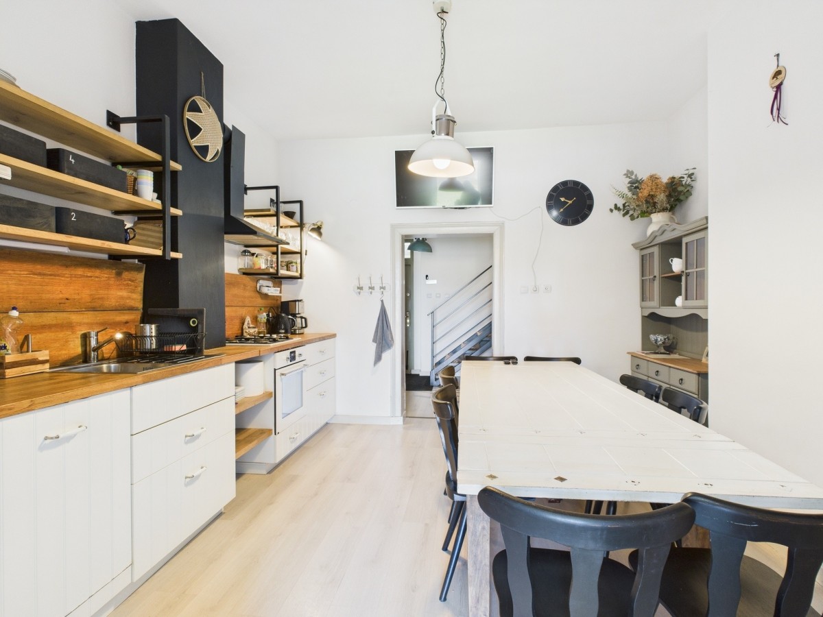 Na parterze (rzut na zdjęciu) - do wyłącznej dyspozycji gości jest kuchnia z dużym stołem oraz :