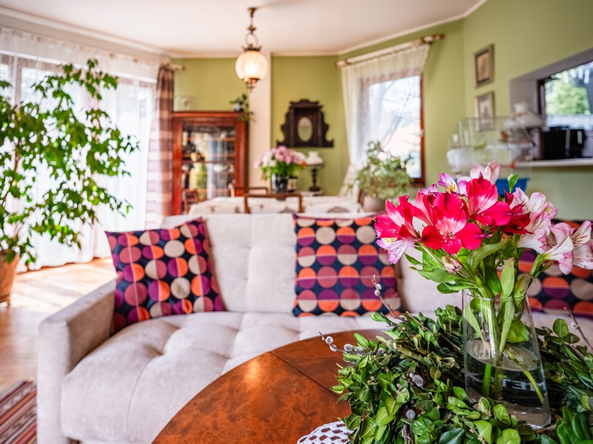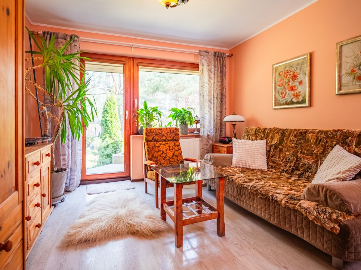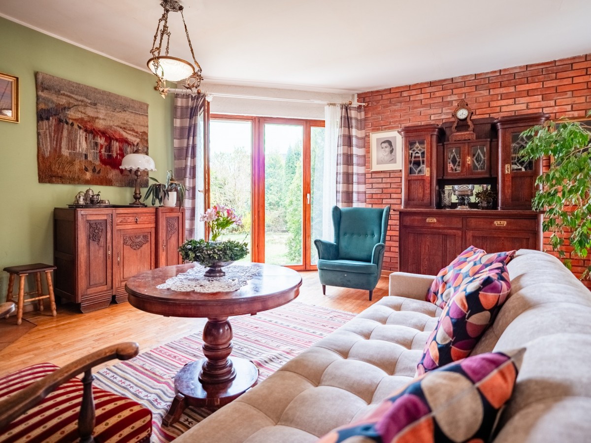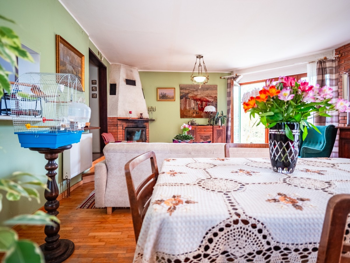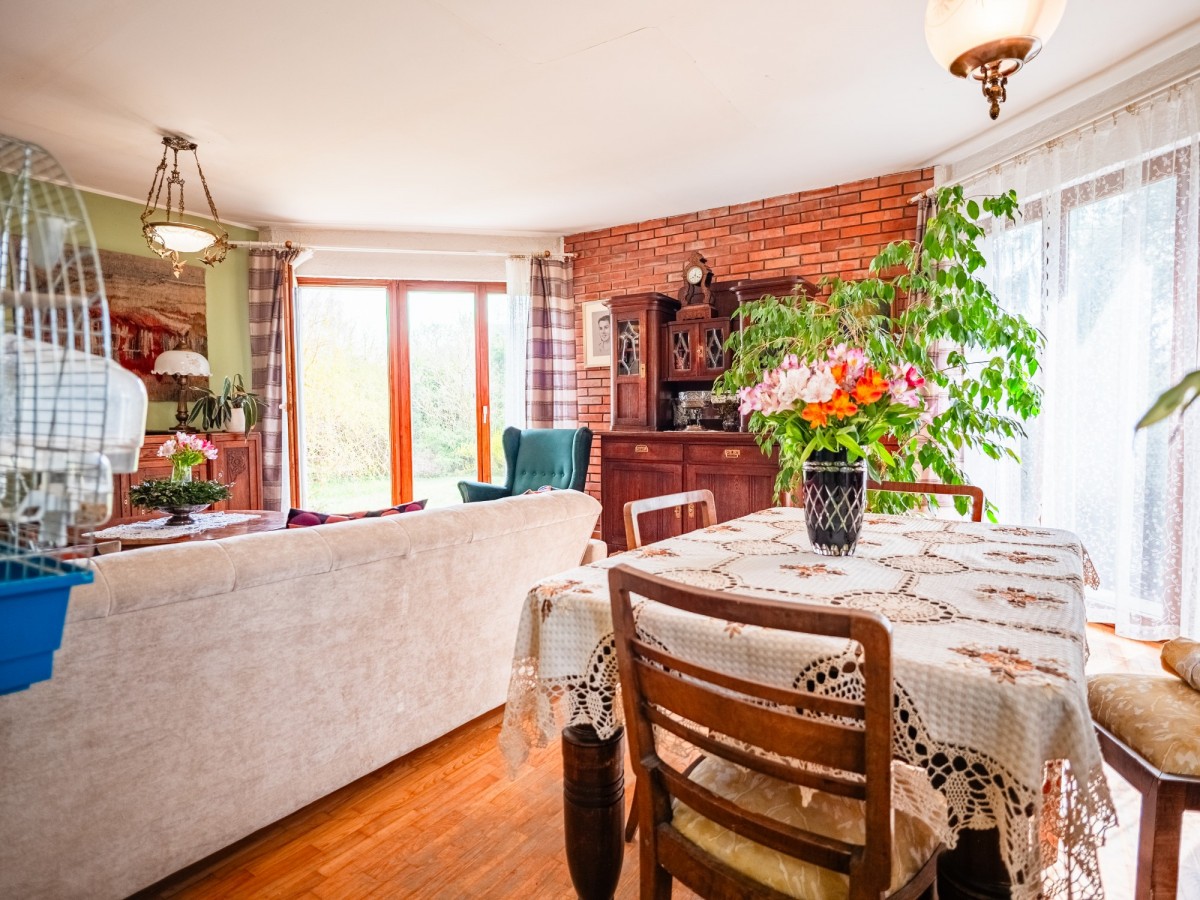 Nieruchomość o powierzchni użytkowej 109,5 m² została wykonana w technologii kanadyjskiej, co zapewnia dobrą izolację i przytulny klimat przez cały rok. Dom usytuowany jest na dużej, starannie zagospodarowanej działce o powierzchni 1877 m². Ogród zachwyca licznymi nasadzeniami i naturalnym charakterem to miejsce, gdzie często można spotkać sarny czy wiewiórki, co nadaje tej przestrzeni wyjątkowego uroku.