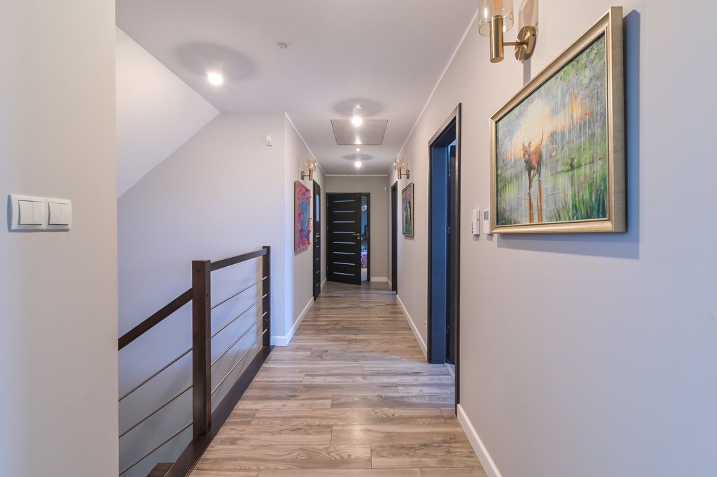 Dom wybudowany w technologii tradycyjnej – solidna konstrukcja murowana ze stropami żelbetowymi w układzie mieszanym. Ściany wykonane z bloczków silikatowych SILKA E, okna PCV. Budowa zakończona w 2012 roku, a wnętrza zostały odświeżone i wykończone około 4 lata temu. Nieruchomość jest zadbana i utrzymana w bardzo dobrym stanie technicznym, z regularnie serwisowanymi instalacjami. Działka ogrodzona, z automatyczną bramą wjazdową.