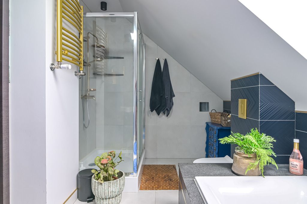 – łazienka z wanną i prysznicem,