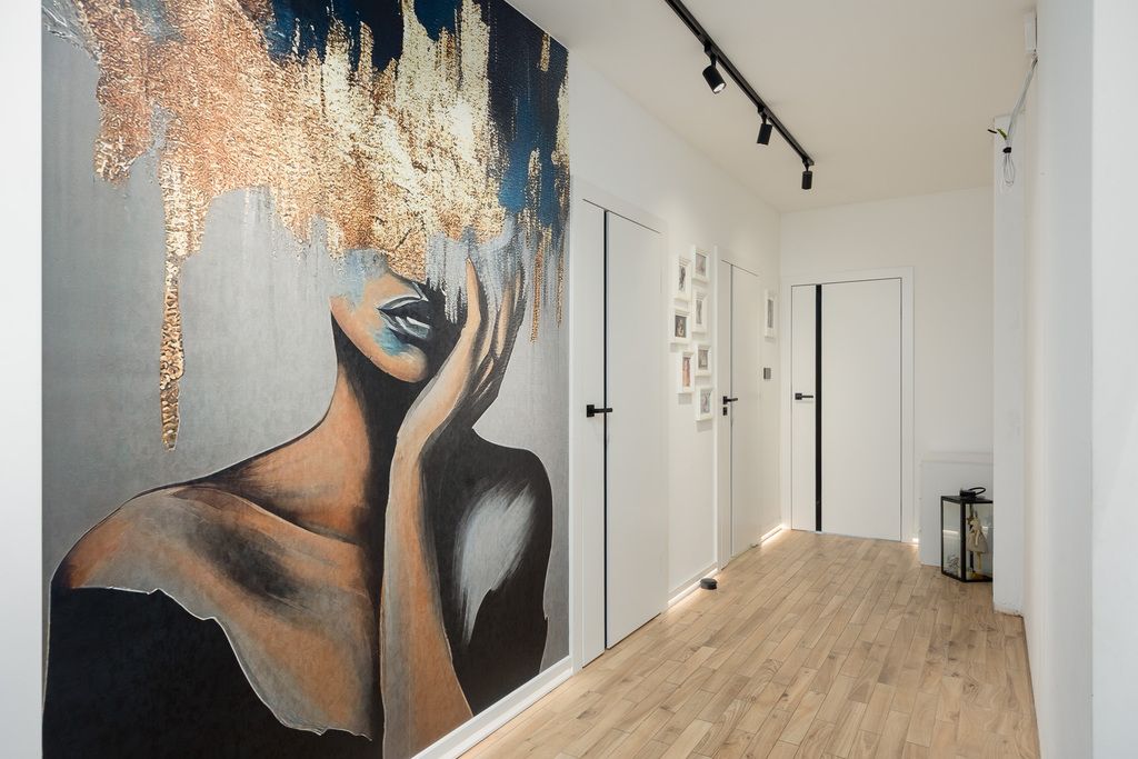 Kuchnia została zaprojektowana w nowoczesnym stylu i wykonana na wymiar, z eleganckim kamiennym blatem, który łączy estetykę z trwałością. Zastosowano w niej wysokiej klasy systemy szuflad i szafek marek BLUM oraz PEKA, zapewniające maksymalny komfort użytkowania. Kuchnia jest w pełni wyposażona w sprzęt AGD: lodówkę z kostkarką, piekarnik, mikrofalówkę, zmywarkę oraz płytę indukcyjną zlicowaną z blatem. Zlew został zintegrowany z blatem, tworząc spójną i nowoczesną całość gotową do codziennego użytkowania.