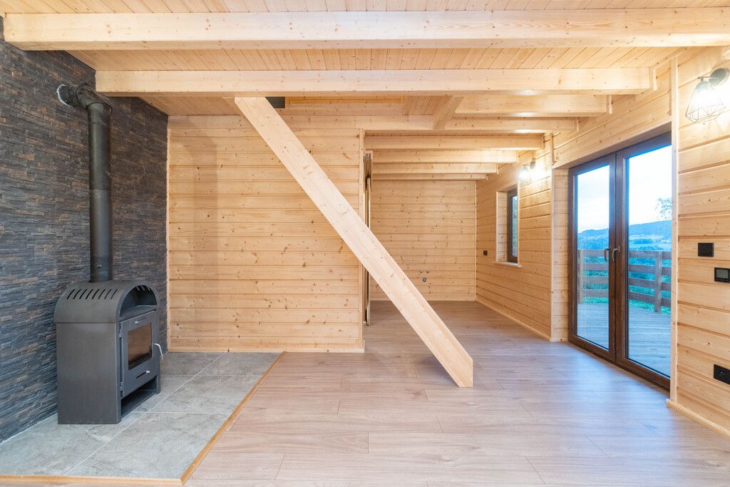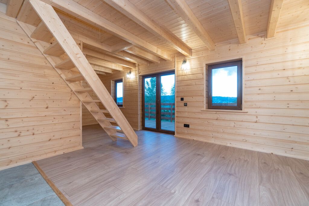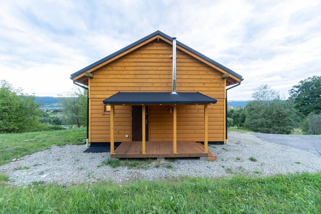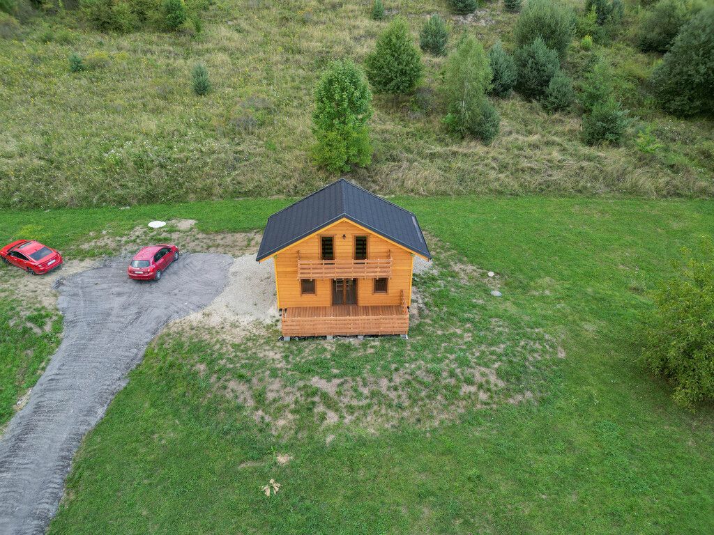 Domek letniskowy o powierzchni ok. 60 m² oraz tarasem 15 m² na dużej, widokowej działce o powierzchni 34,3 ara, położonej na widokowym miejscu.