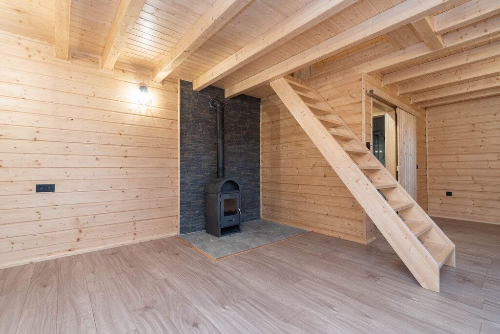 Ściany budynku zostały ocieplone wełną i obłożone deską elewacyjną. Do aneksu została doprowadzona siła.