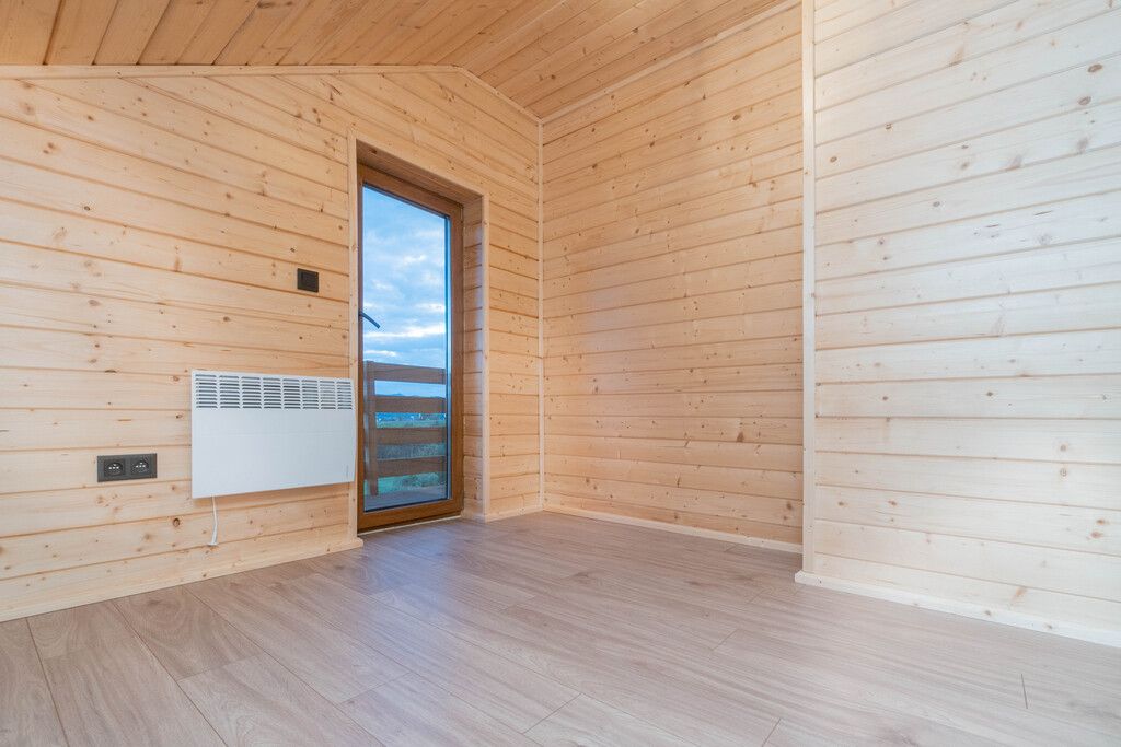 The cottage is heated by a fireplace and electric heaters, and the water is heated by an electric heater. The bathrooms have underfloor heating.