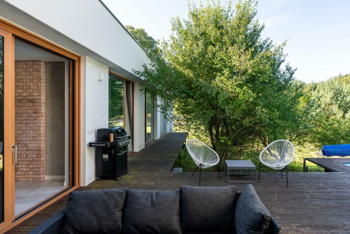 Poczuj się jak w prywatnej letniej rezydencji - las za płotem, basen na tarasie, a w pobliżu jedno z najpiękniejszych jezior w Polsce.