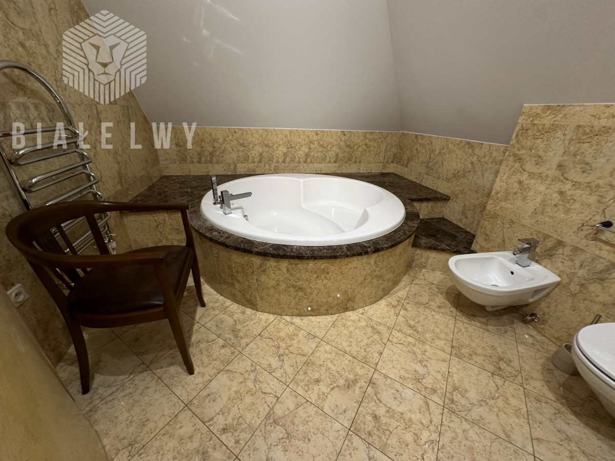 - pokój kąpielowy z wanną, prysznicem, dwiema umywalkami i balkonem o powierzchni 20,70 m2
