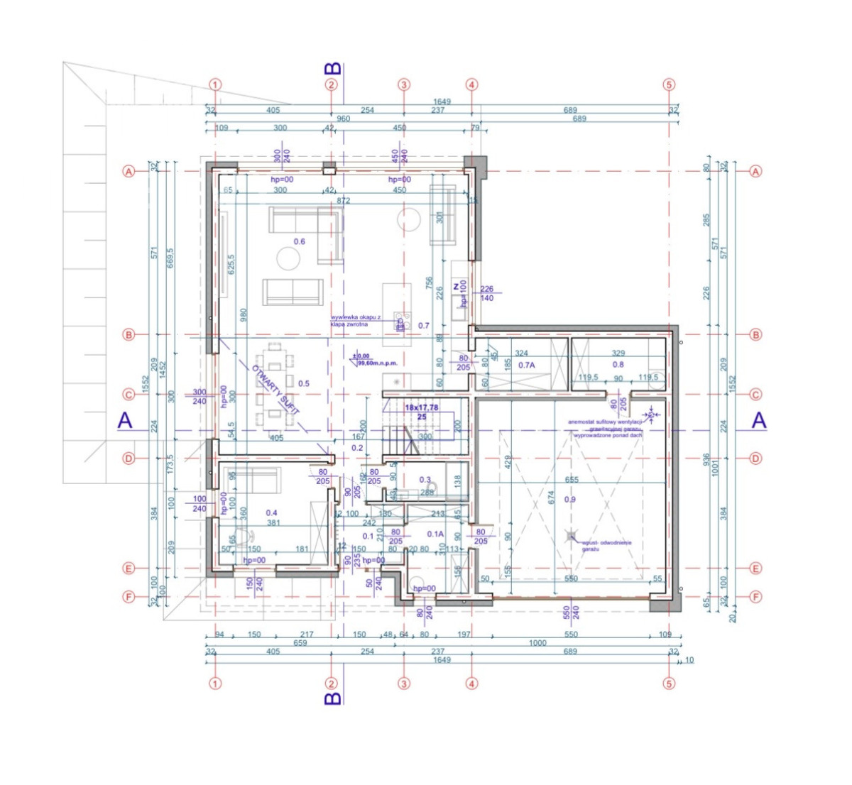 - Parter: 165,66 m² (w tym garaż 43,62 m²)