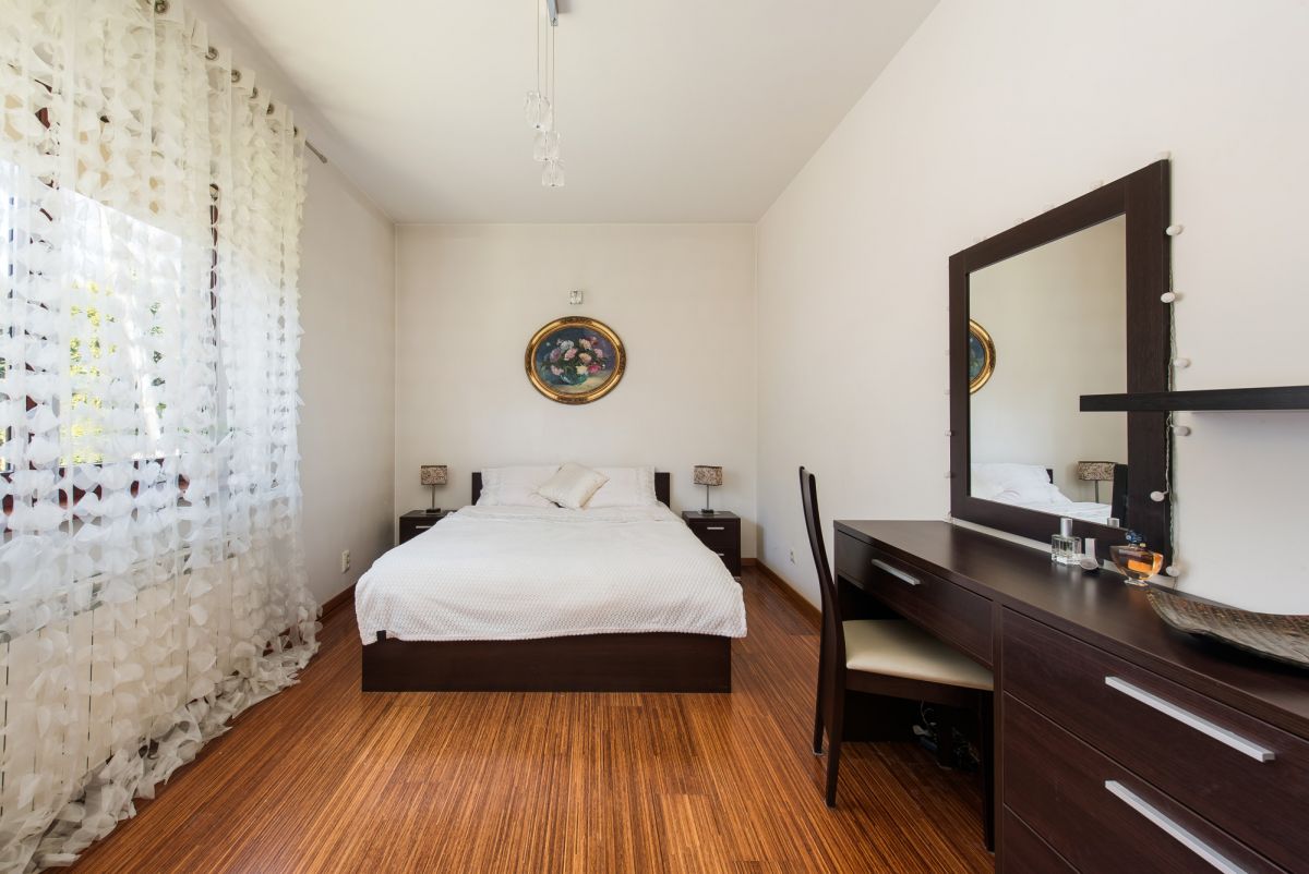 PIĘTRO: dwie sypialnie z przestronną garderobą, łazienka z wanną z hydromasażami oraz światłoterapią oraz prysznic, za łazienką garderoba (możliwość przekształcenia na saunę), pokój biurowy, komunikacja w formie salonu.