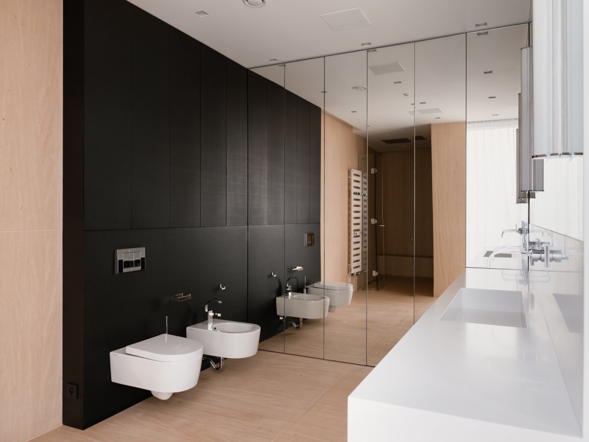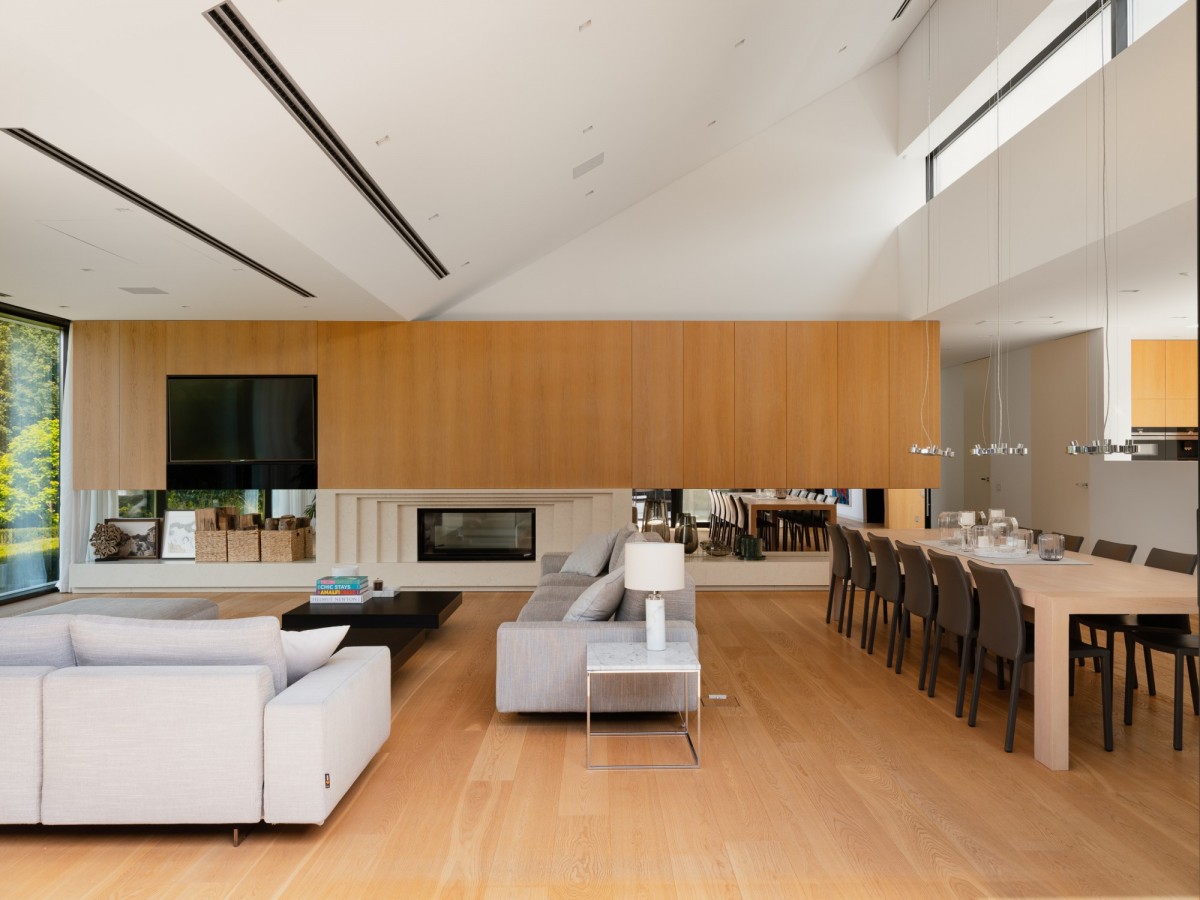 The interior of the house is designed in a modern style with elegant finishes. The master suite, SPA room, all bedrooms, and the living room have direct access to the terrace, offering unparalleled views of the lake. The SPA room and living room share a double-sided fireplace, adding warmth and coziness to the spaces. The kitchen annex is highlighted by a ceiling skylight, providing natural light and a spacious feel. The cinema room with a billiard table is perfect for relaxation and entertainment. The large terrace serves as the central point of the house, ideal for social gatherings and outdoor relaxation.