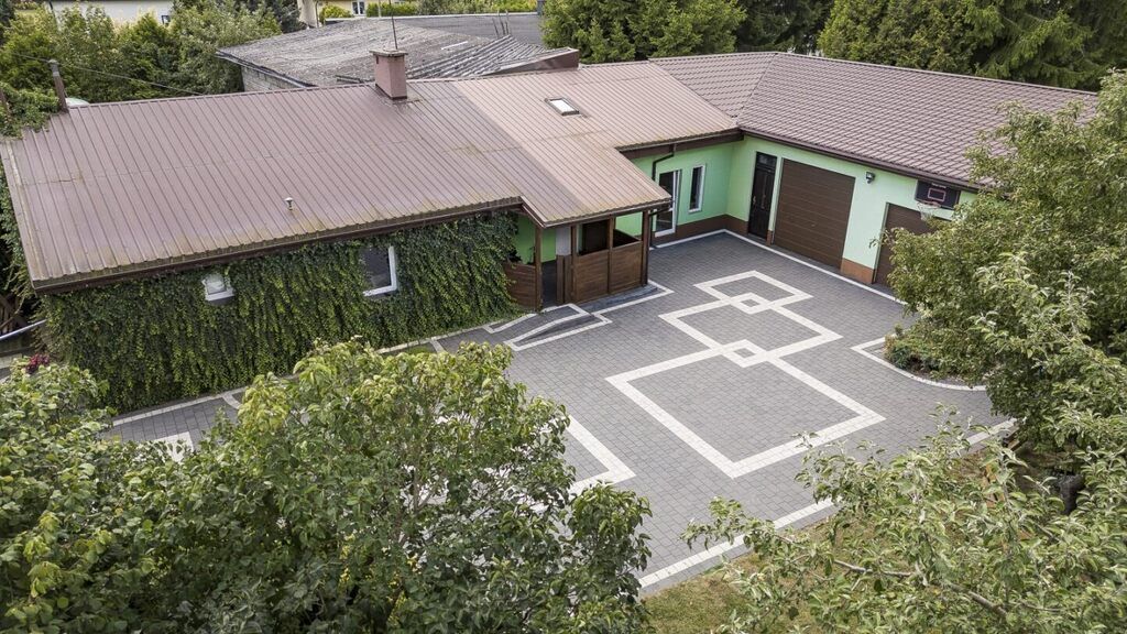 - Dwa garaże ocieplone z automatyczną bramą, o powierzchni 80 m², podłoże beton przemysłowy.