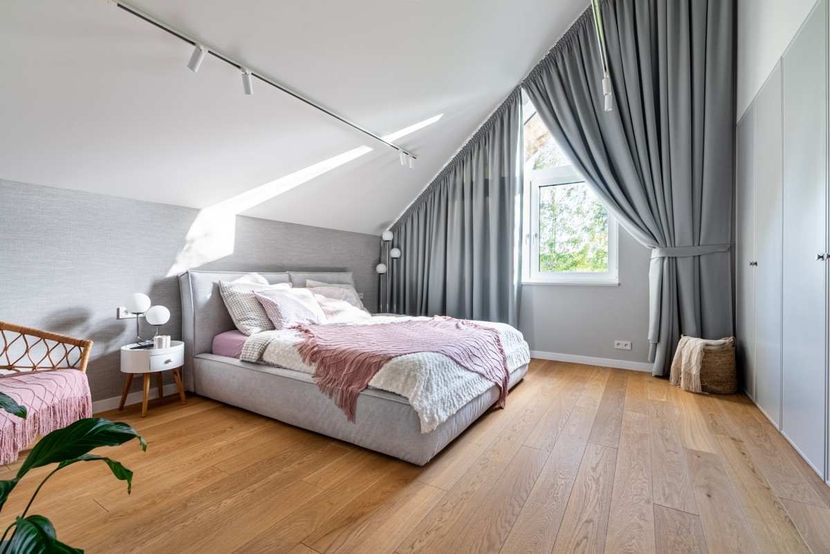 - dopracowana zabudowa stolarska: biblioteczki, garderoba, szafy;