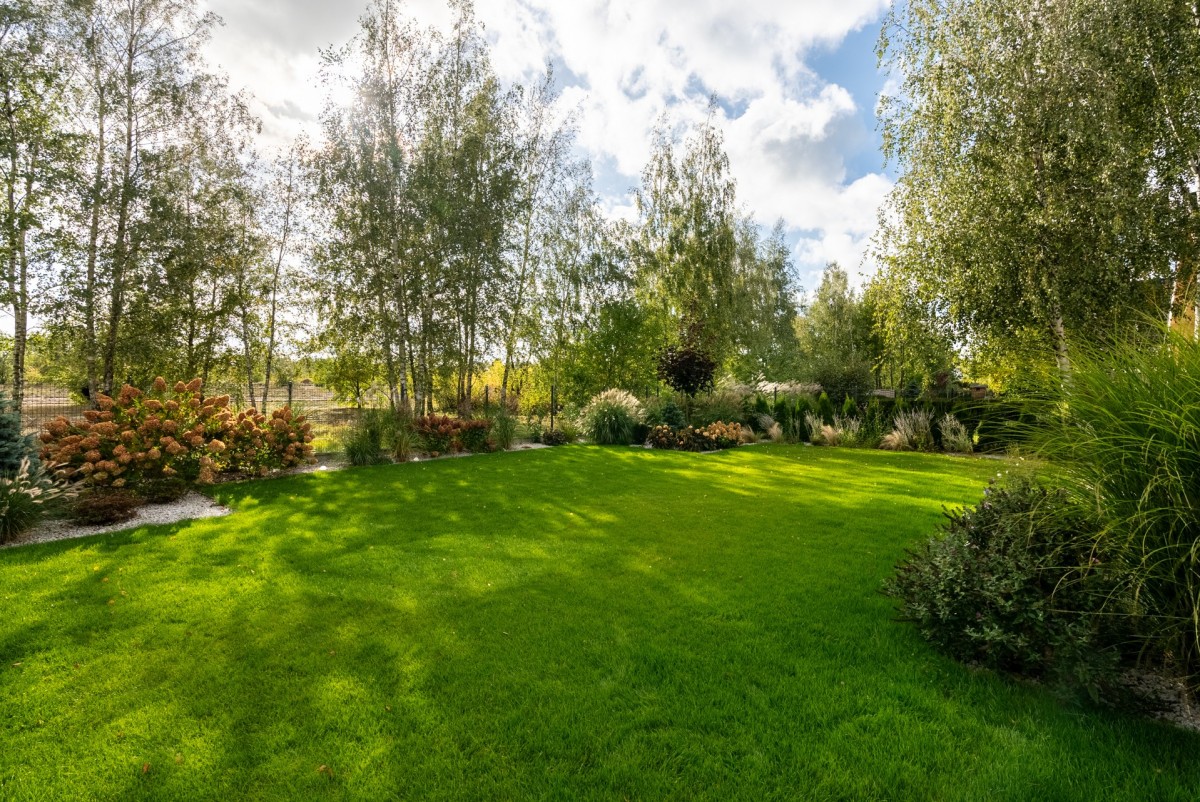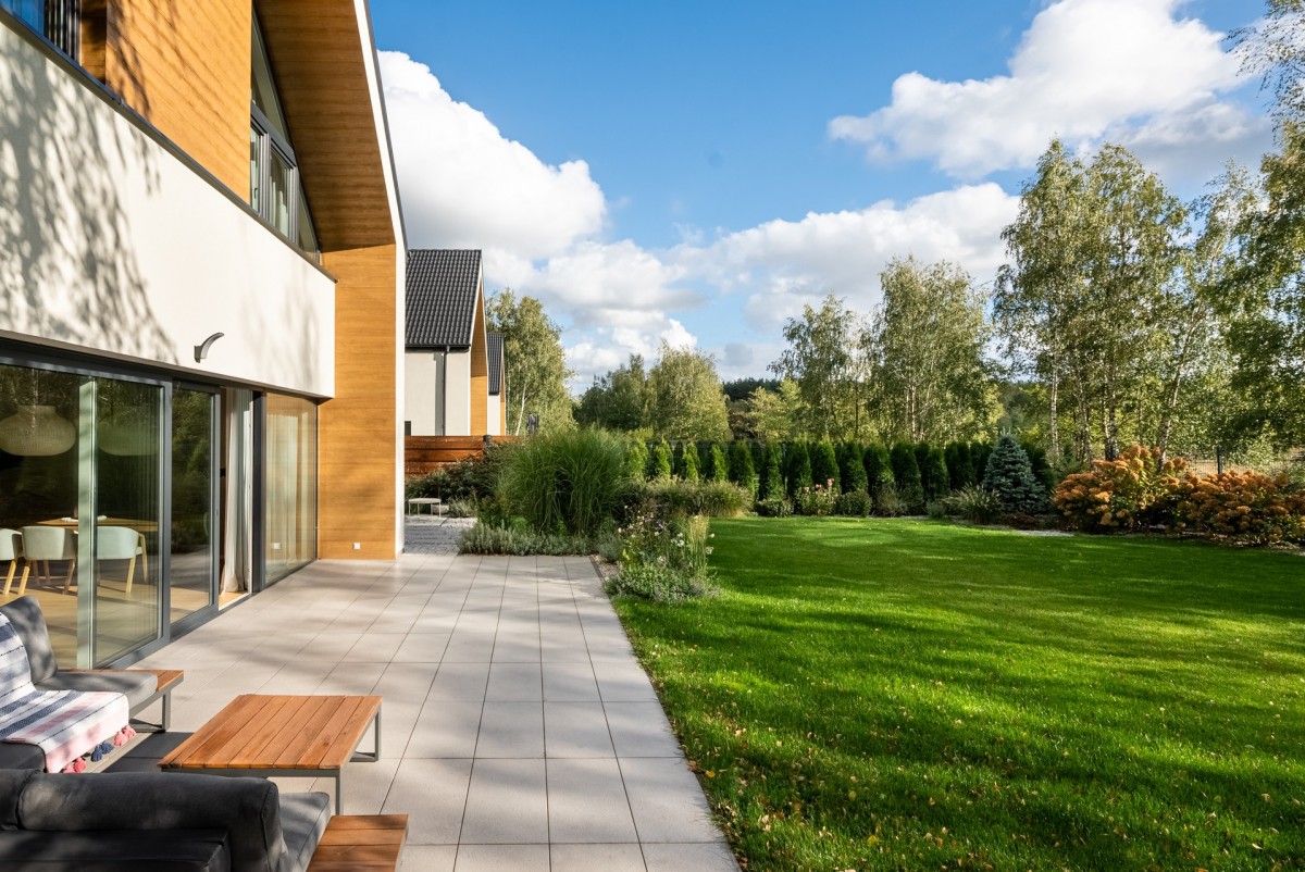 - idealnie zaaranżowany ogród z nawodnieniem kropelkowym sterowanym automatycznie, zadbana trawa wysiewana z folii, piękne nasadzenia;