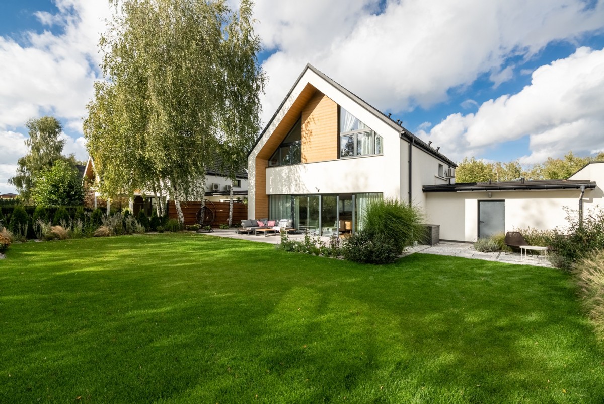 Dom nowoczesny, przemyślana bryła z designerskimi elementami, a w środku dużo światła, idealne strony świata, ciekawa aranżacja wnętrza.