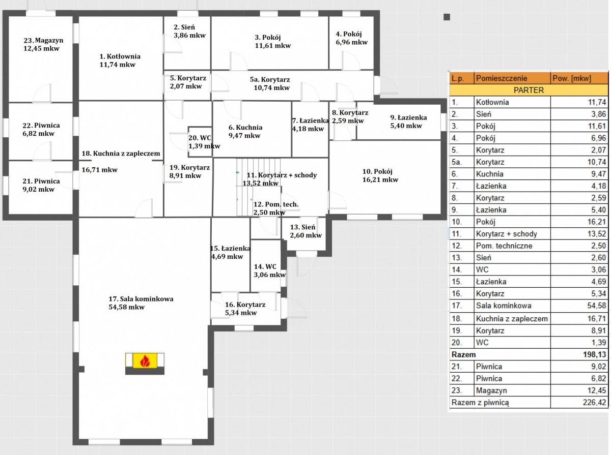 Przestronny, tradycyjnie murowany dom o powierzchni ok. 400 m² z możliwością wydzielenia kilku niezależnych stref mieszkalnych - idealny pod agroturystykę, dom wielopokoleniowy lub działalność usługową (np. klimatyczną kawiarnię).