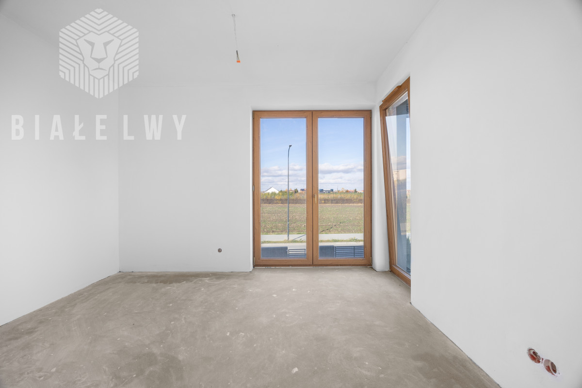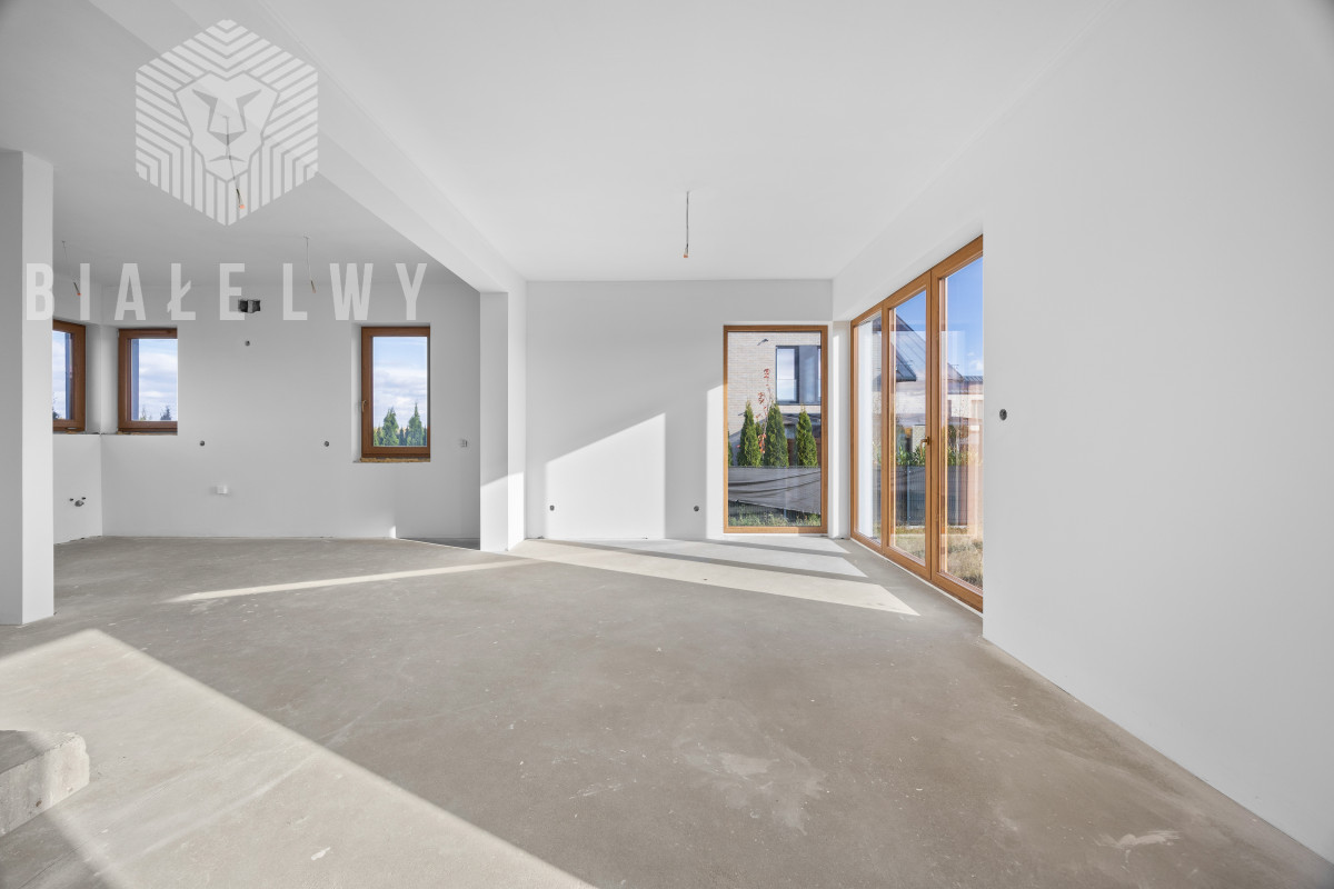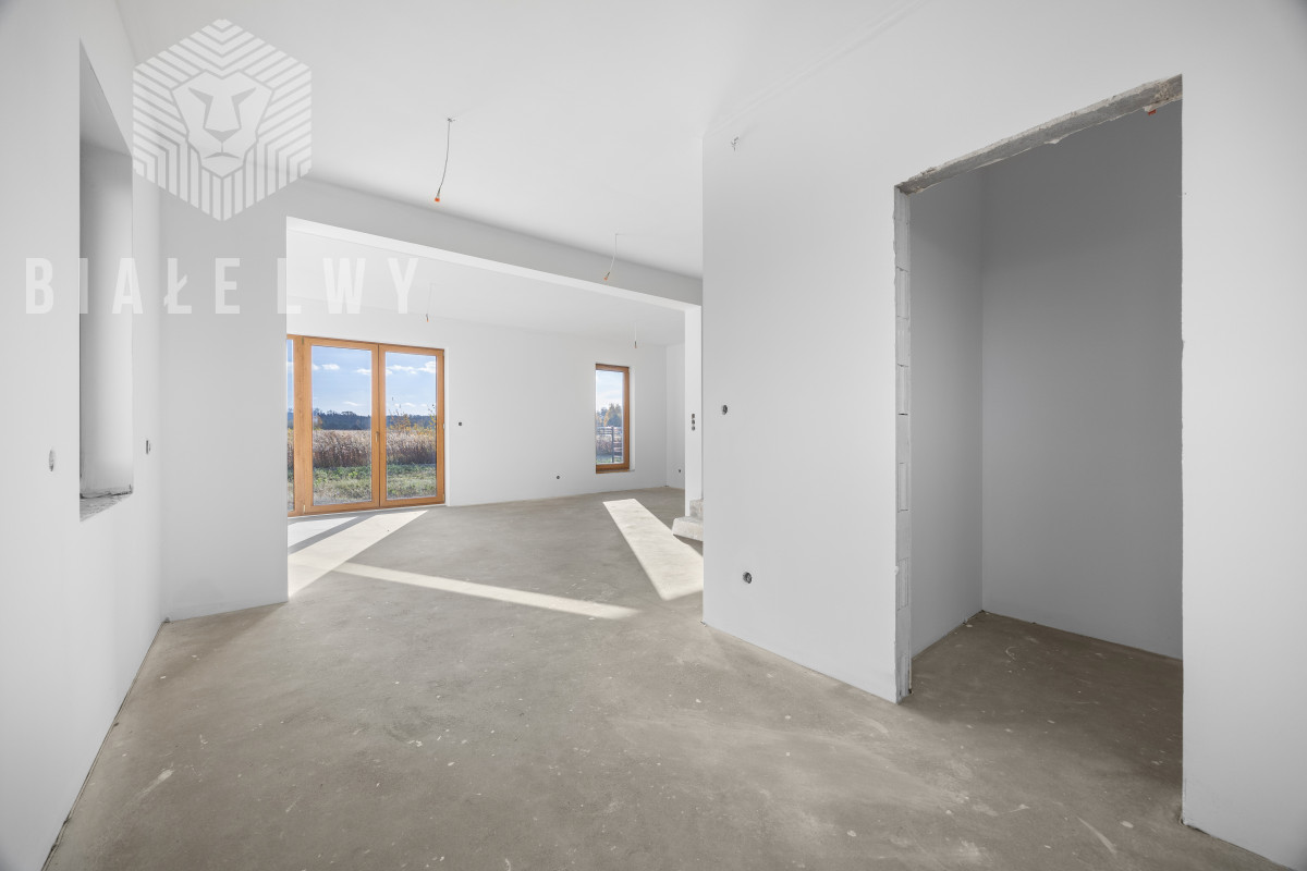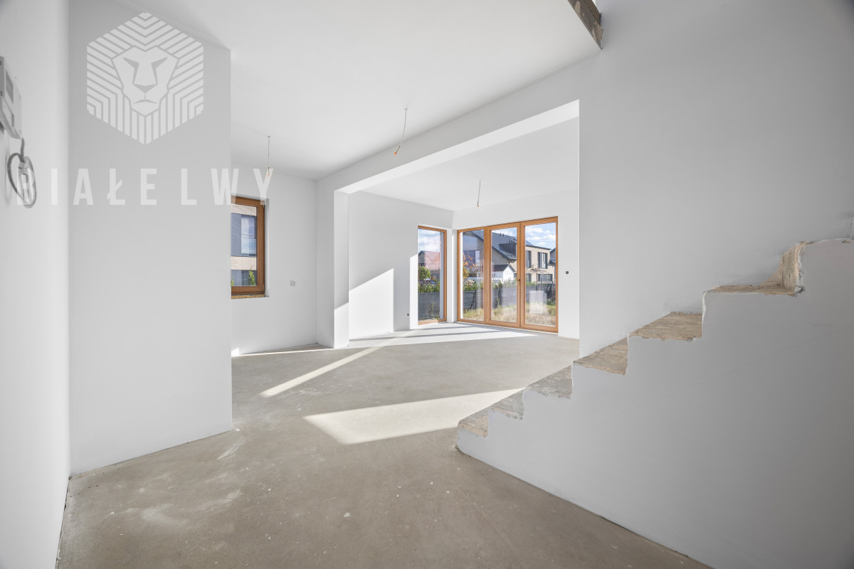 • Parter: salon z jadalnią i wyjściem na ogród, kuchnia, łazienka, pomieszczenie gospodarcze, wiatrołap, garaż.