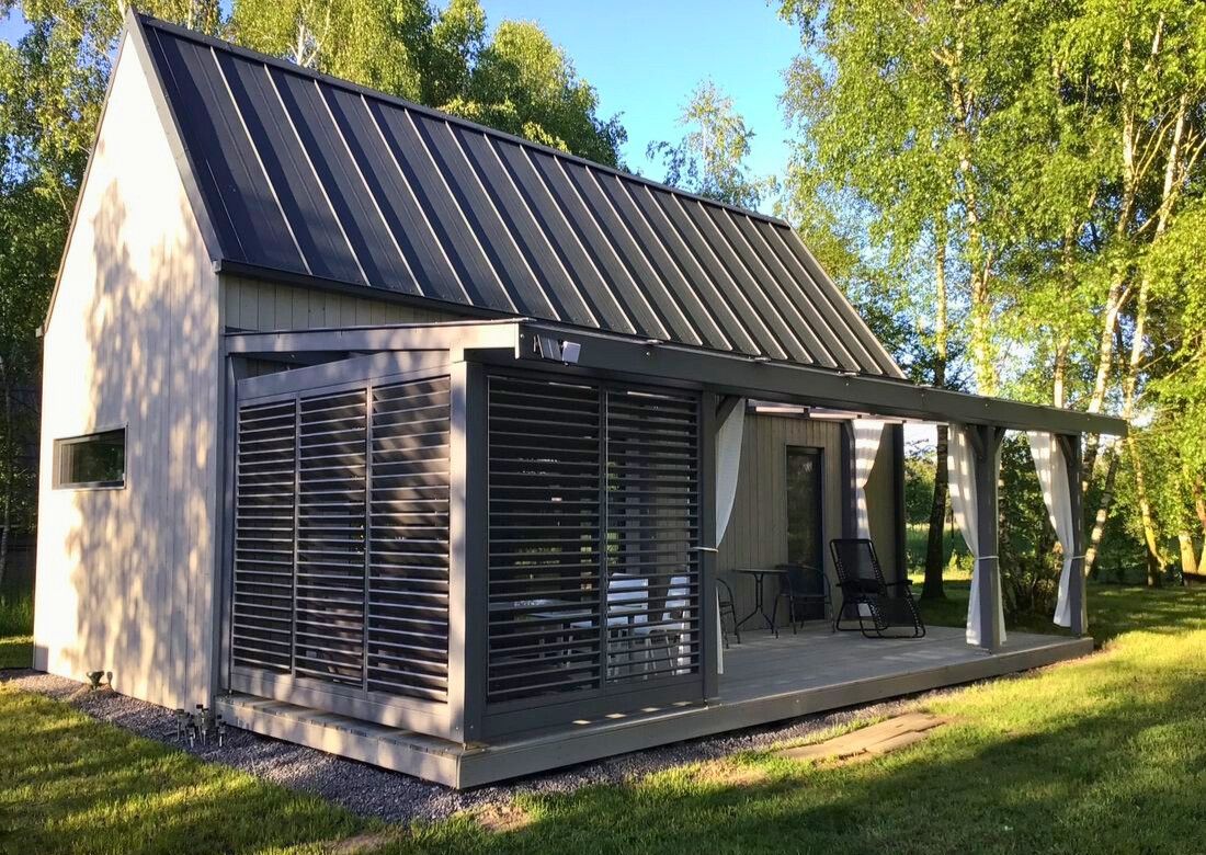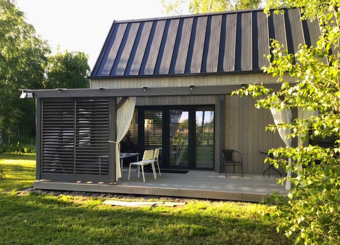 Domek rekreacyjny z 2022 roku (sypialnia + salon z aneksem kuchennym + łazienka + sypialnia na piętrze 20m2+ Antresola + Taras), w wysokim standardzie wykończeń.