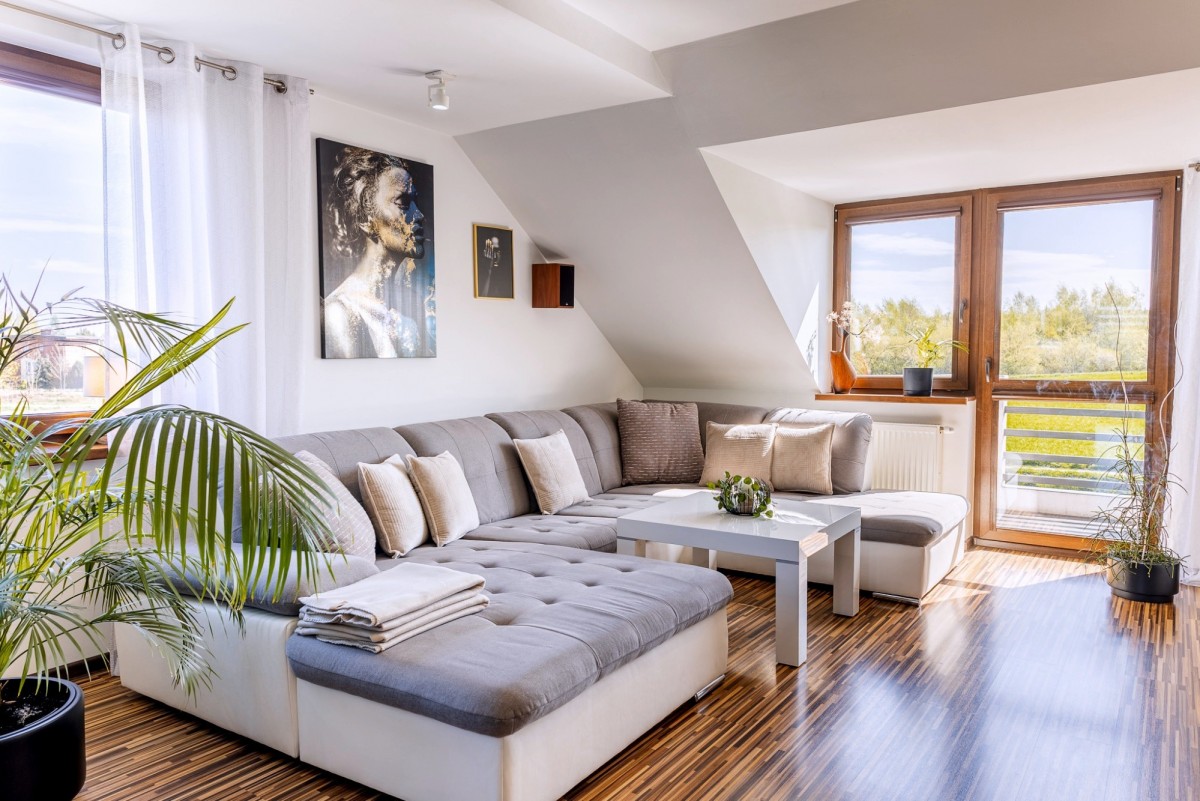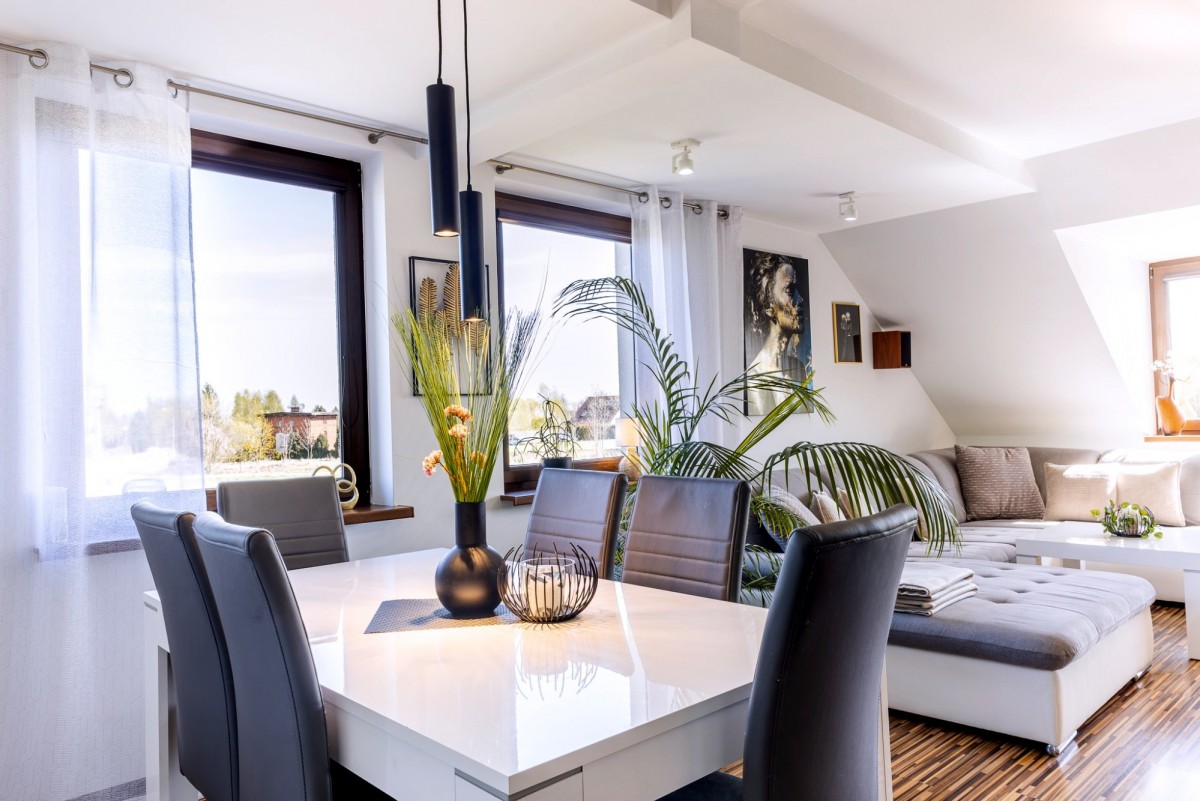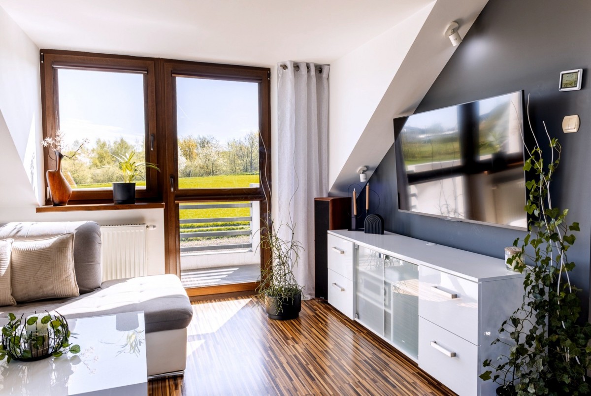- przestrzenny salon (powstał z połączenia dwóch pokoi, które można ponownie podzielić)