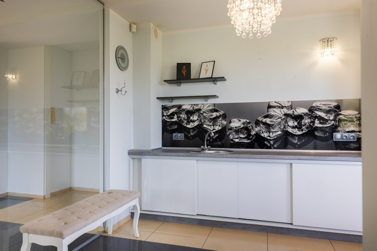 - otwarta kuchnia - wyspa, pełna zabudowa meblowa i wyposażenie AGD