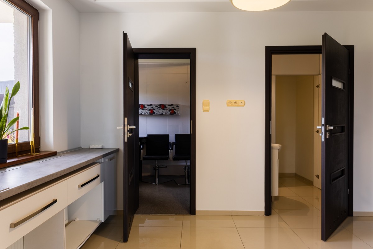 - część techniczna: kotłownia z wyjściem do garażu i na zaplecze budynku,