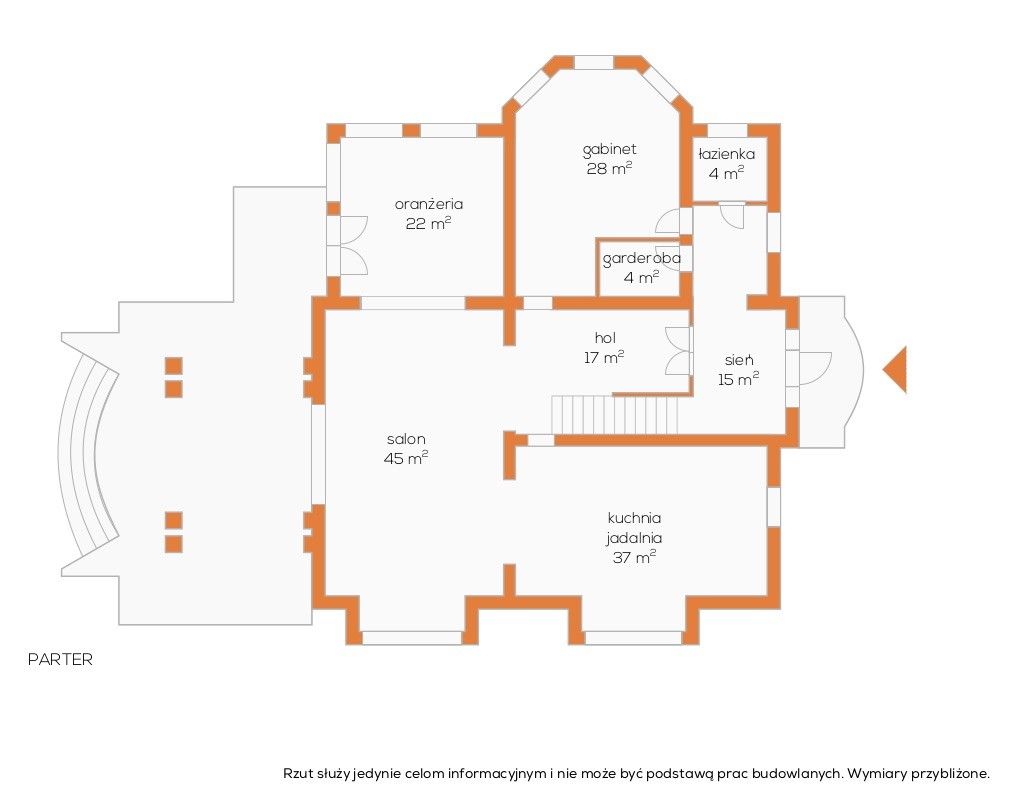 - gabinet 28 m2 z oknami na ogród zewnętrzny i ogród letni