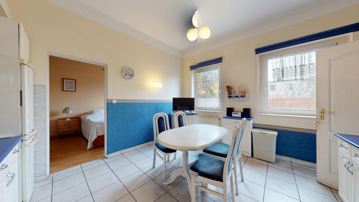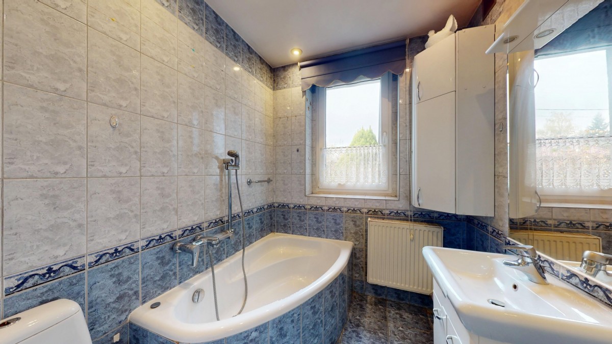 Dom posiada niezależny pokój z osobnym wejściem idealny na biuro, pracownie, pomieszczenie gospodarcze czy dodatkowa sypialnie oraz przestronny taras, idealny do wypoczynku. Kotłownia wyposażona jest w piec węglowy oraz bojler, a na głównej ulicy przylegającej do działki znajduje się przyłącze gazowe, co umożliwia w przyszłości zmianę systemu ogrzewania w domu. W salonie, w narożniku, znajduje się działający kominek, który nadaje wnętrzu ciepły i przytulny charakter.