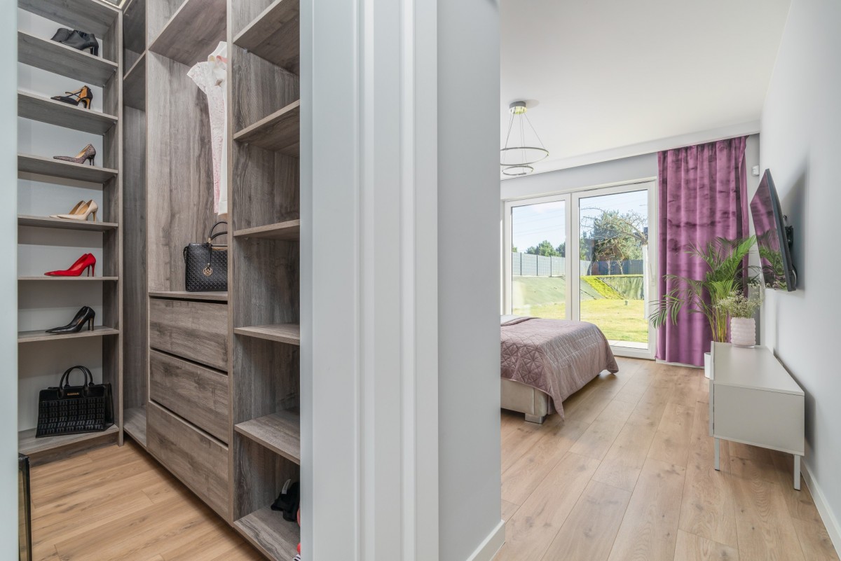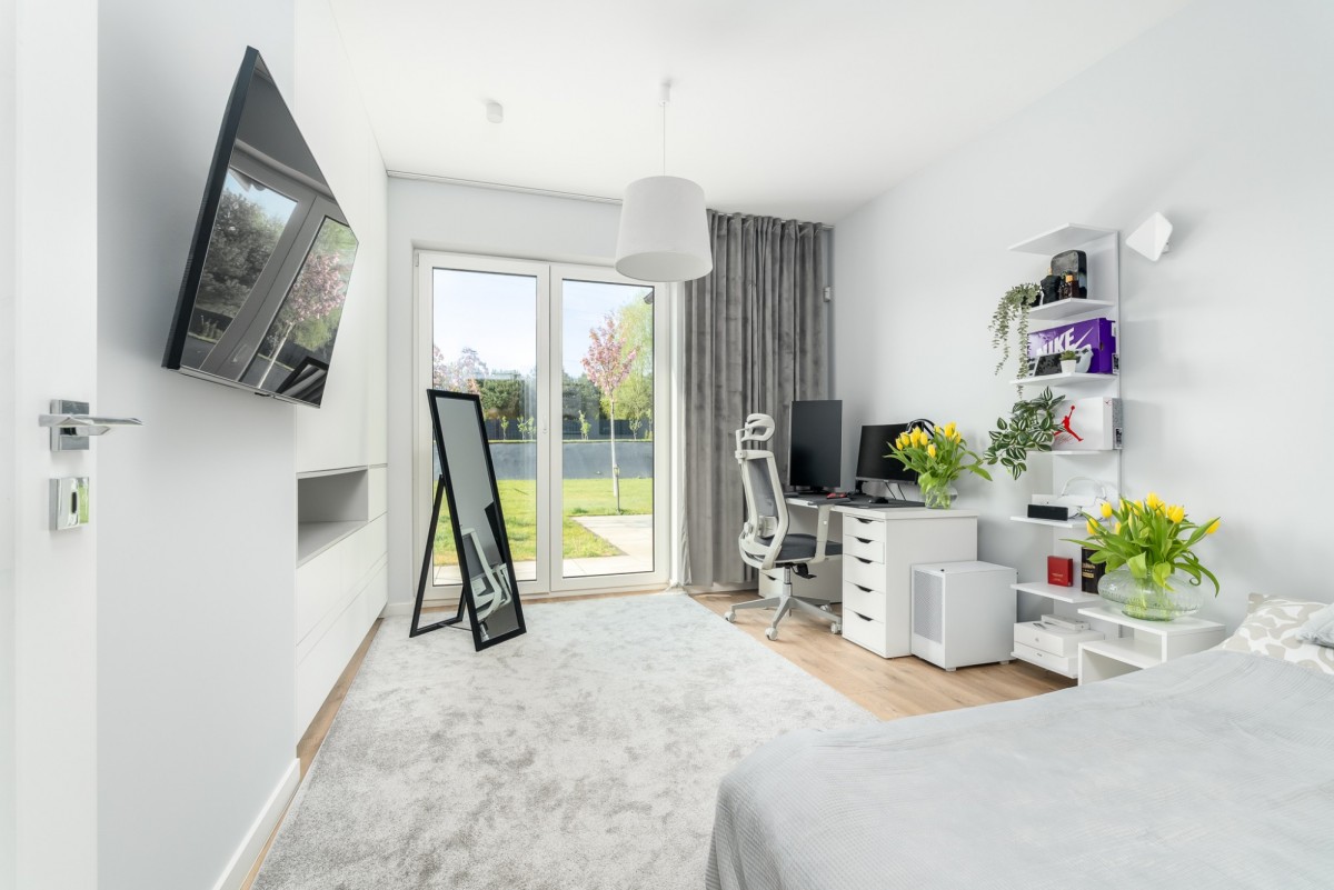 Na parterze znajduje się Sypialnia Master (18 m²) z prywatną łazienką z wanną i prysznicem oraz garderobą, 2 pokoje o powierzchni blisko 15 m² - z każdego pomieszczenia jest wyjście na taras.