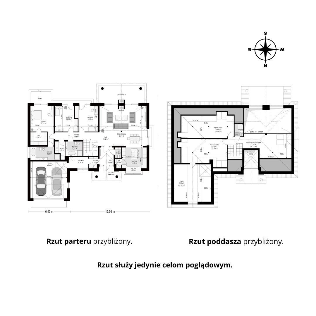 * 2 poziomy: parter i poddasze użytkowe