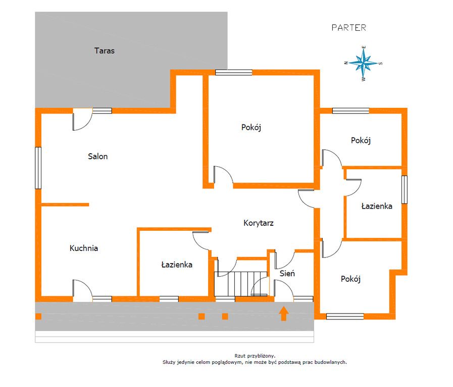 - Dom usytuowany ok. 500 m od drogi głównej, co gwarantuje ciszę i spokój.