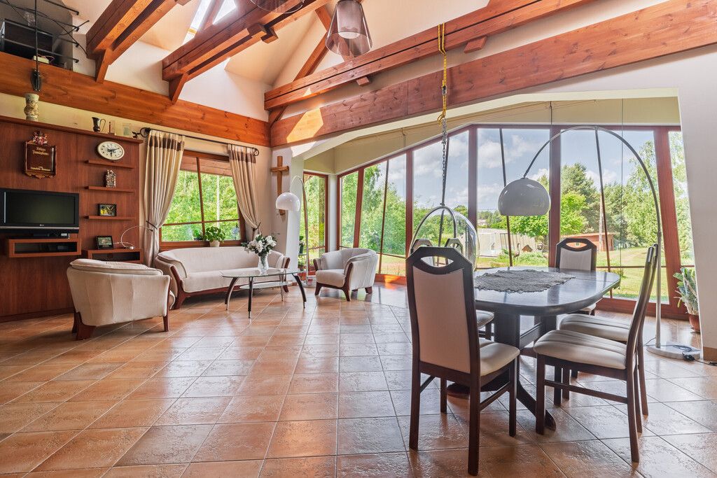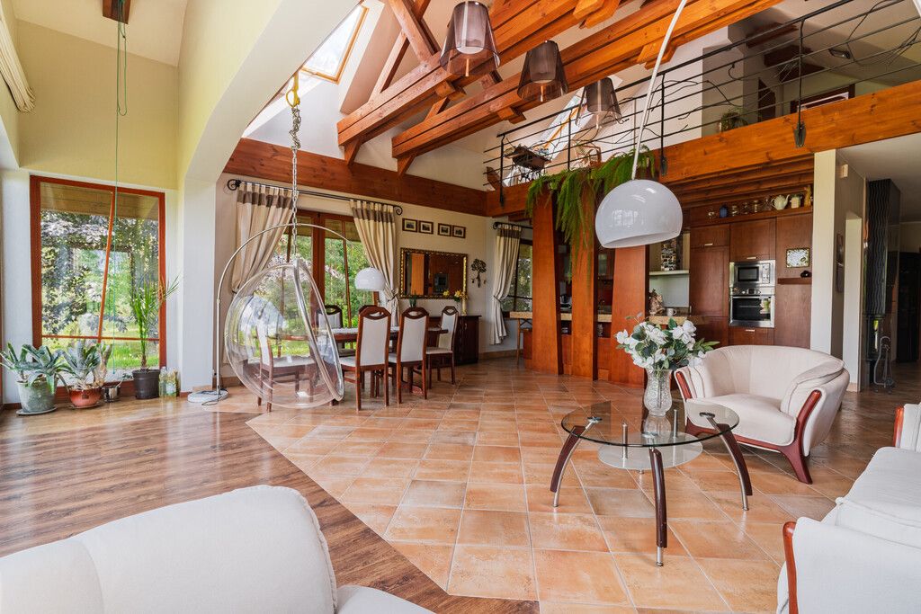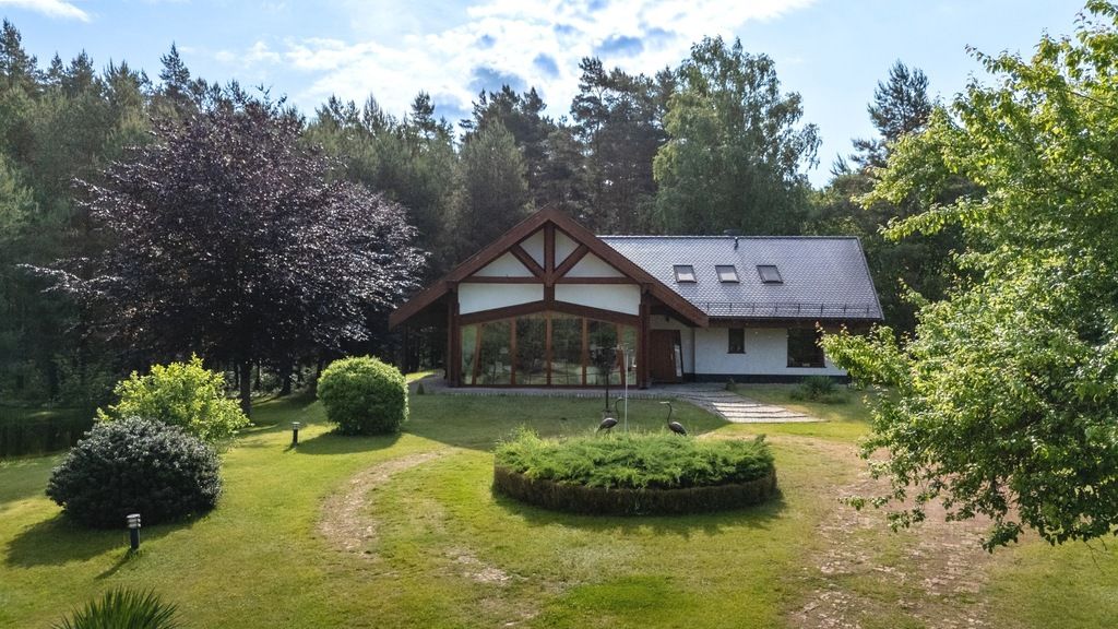- Dom posadowiony na działce o powierzchni ponad 35 000 m2 tuż przy lesie z prywatnym stawem.