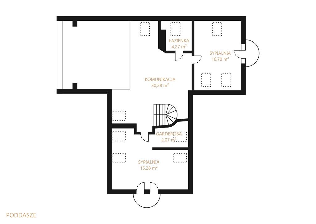 - Cześć domu podpiwniczona z możliwością aranżacji pokoju rekreacyjnego oraz sauny.