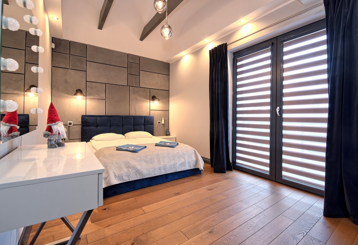 13,6 m2 - sypialnia z garderobą 1 oraz dostęp do dużego tarasu około 15m2