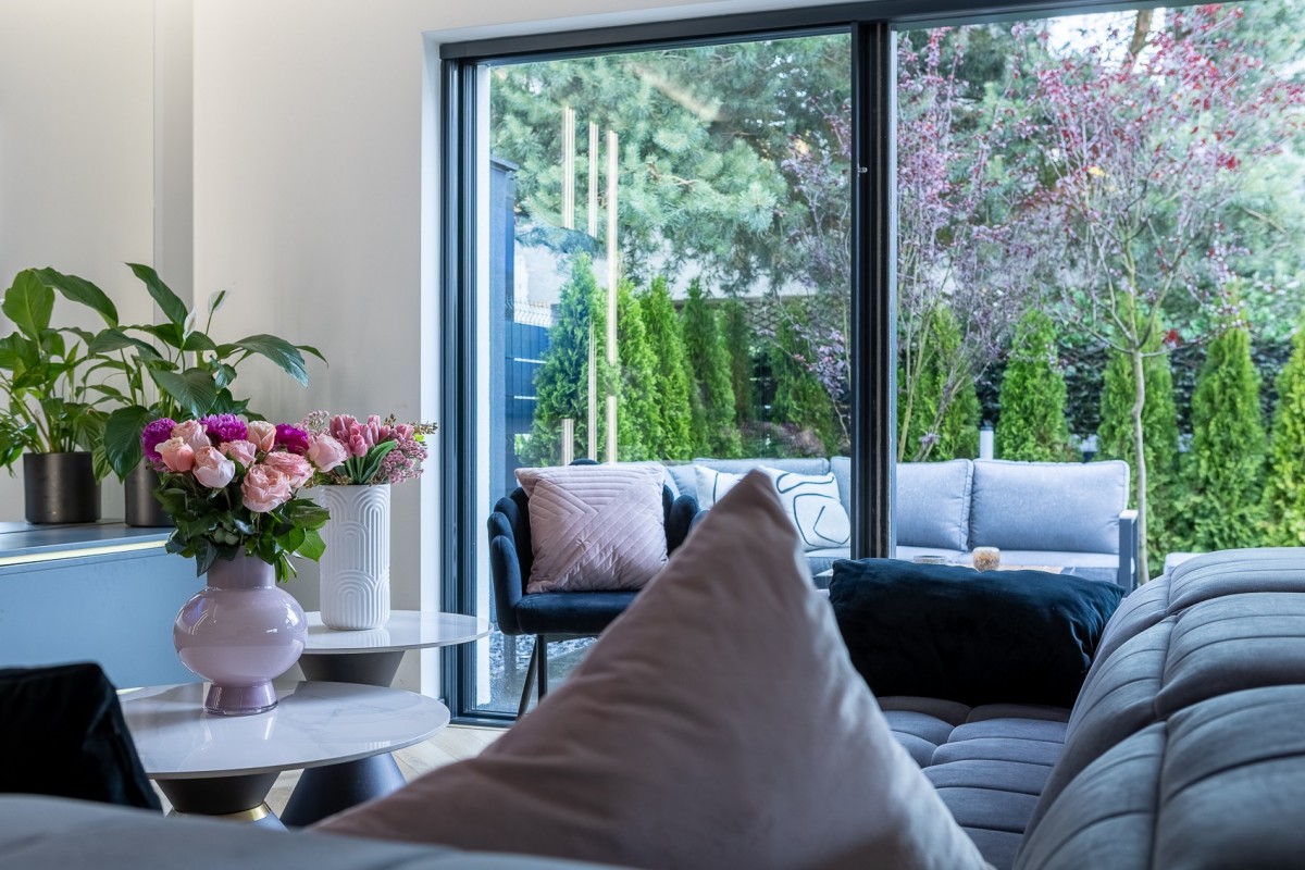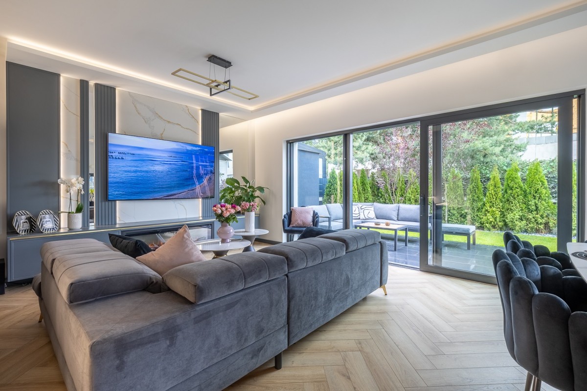 Okno tarasowe w systemie HST ALUMINIOWYM: Duże przeszklenia wpuszczające mnóstwo naturalnego światła.