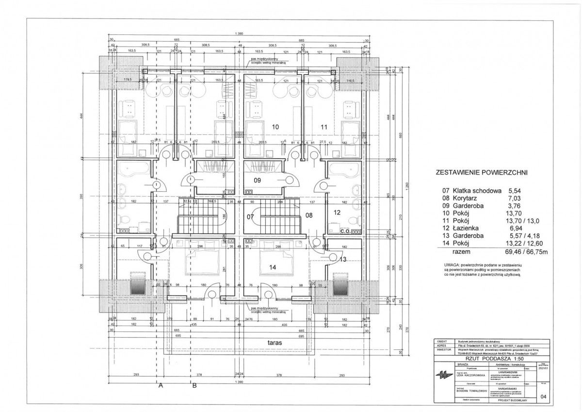 TYLKO U NAS!!! KUPUJĄCY NIE PŁACI PODATKU PCC 2% Powierzchnia użytkowa połówki bliźniaka 144,89m2 wraz z garażem o pow. 19,27m2 Powierzchnia działki 786m2 Dom zostanie wykończony w standardzie deweloperskim OPIS POMIESZCZEŃ: Parter: przedsionek i korytarz - 8,52m2 klatka schodowa - 5,54m2 salon aneksem kuchennym - 39,87m2 wc - 2,26m2 garaż - 19,72m2 Piętro: korytarz - 7,03m2 łazienka - 6,94m2 pokój - 13,70m2 pokój - 13,00m2 pokój - 12,60m2 garderoba - 3,76m2 garderoba - 4,18m2 Na zewnątrz budynek ocieplony pokryty tynkiem. Front budynku - chodnik podejście do drzwi wejściowych oraz podjazd do bramy garażowej z polbruku. Tył budynku część ogrodowa - ogrodzona Media: prąd, woda, kanalizacja, gaz. Ogrzewanie własne gazowe