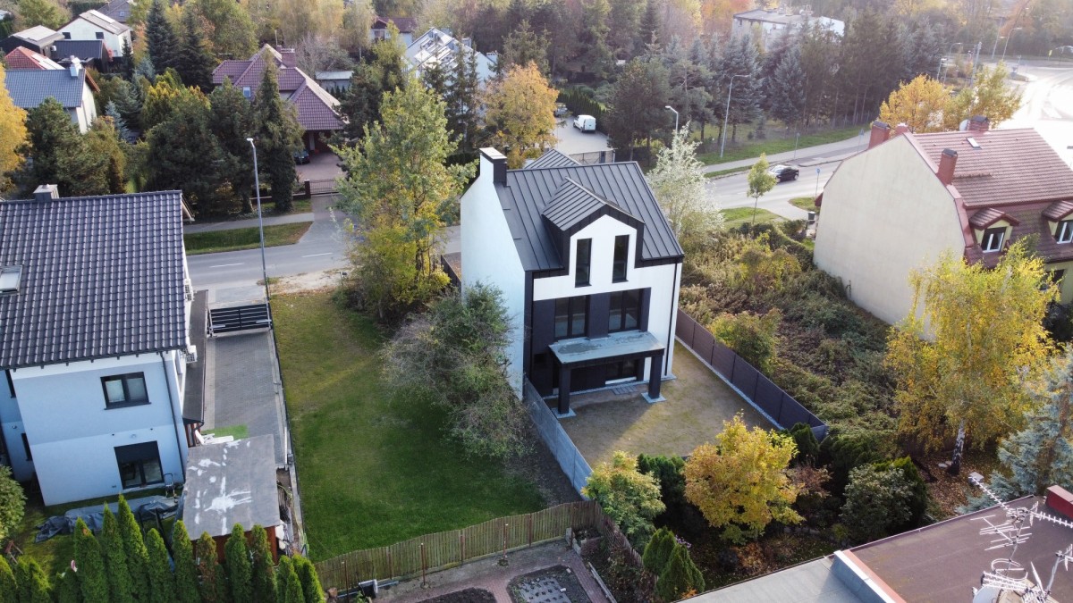Budynek w stanie surowym zamkniętym o przestronnej bryle, z dużą liczbą okien, które zapewniają wyjątkowo jasne i dobrze doświetlone wnętrza. Metraż budynku wynosi 211 m2. Solidne, trójszybowe okna gwarantują znakomitą izolację termiczną i akustyczną oraz bezpieczeństwo. W bryle budynku mieści się komfortowy garaż z bramą renomowanej firmy Wiśniowski, a szeroka klatka schodowa dodaje wnętrzom elegancji i ułatwia komunikację między kondygnacjami. Układ pomieszczeń daje duże możliwości aranżacyjne — jasne pokoje łatwo zaadaptować na salon, gabinet czy sypialnie, a rozległe przeszklenia optycznie powiększają przestrzeń. Całość stanowi solidną bazę do wykończenia według własnego projektu, łącząc wysoką jakość wykonania z funkcjonalnością i nowoczesnym charakterem.